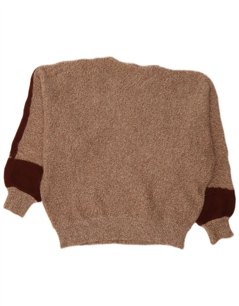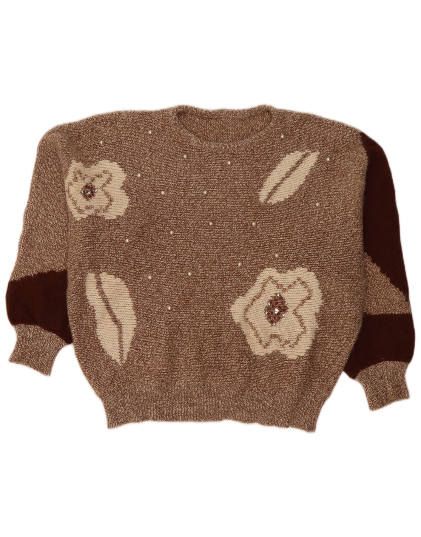 VINTAGE Womens Crop Crew Neck Jumper Sweater UK 14 Medium Brown Flecked