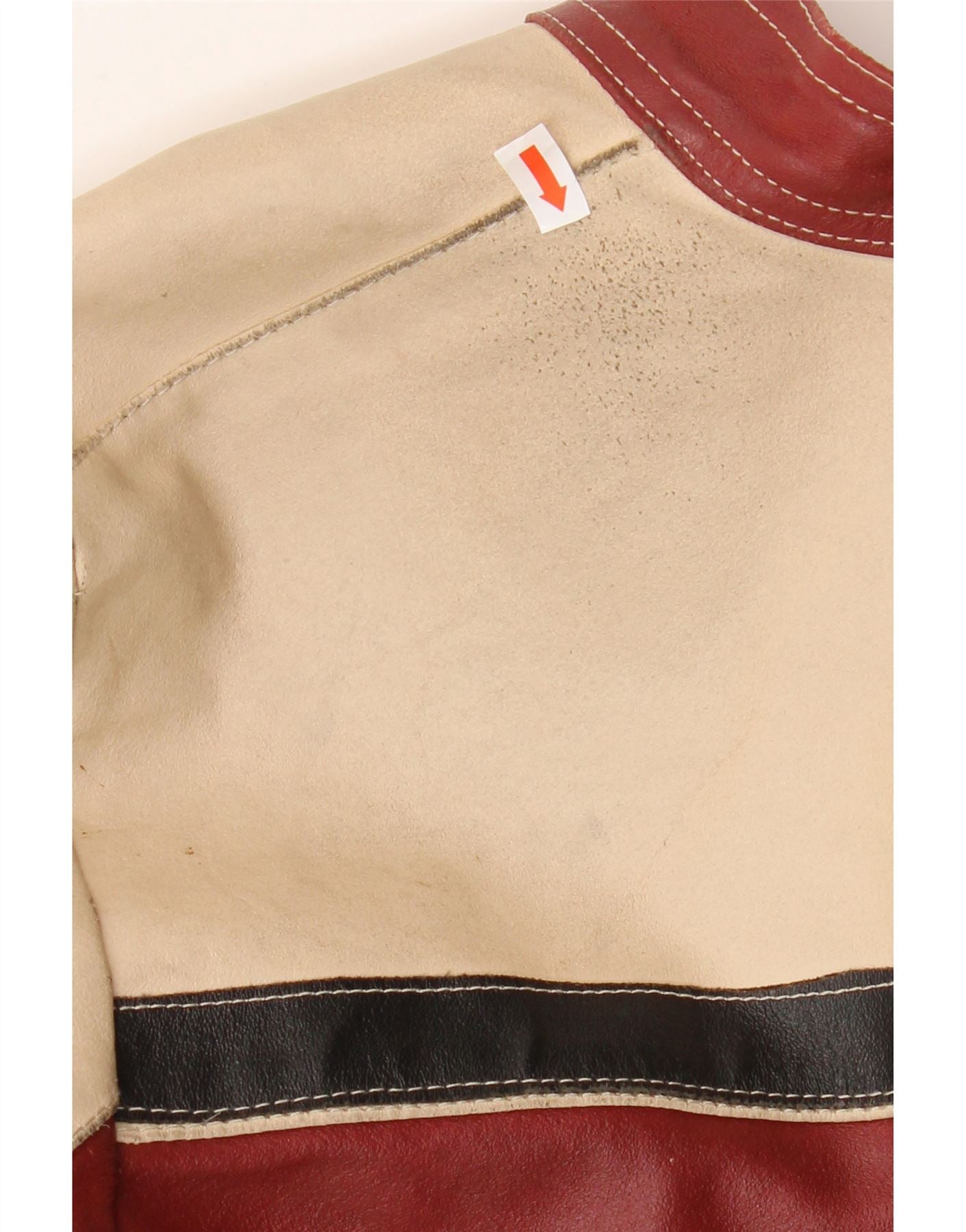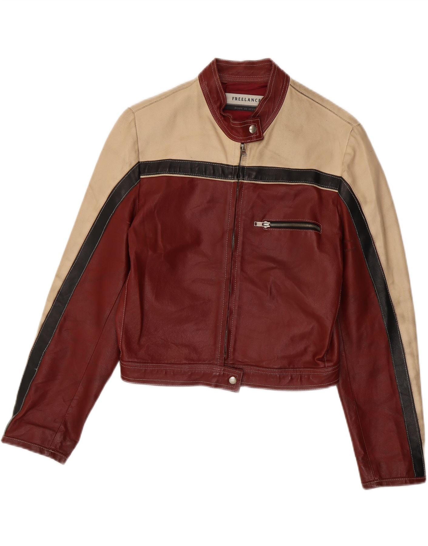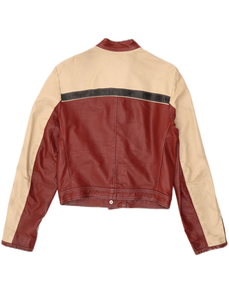 VINTAGE Womens Crop Leather Jacket UK 12 Medium Burgundy Colourblock