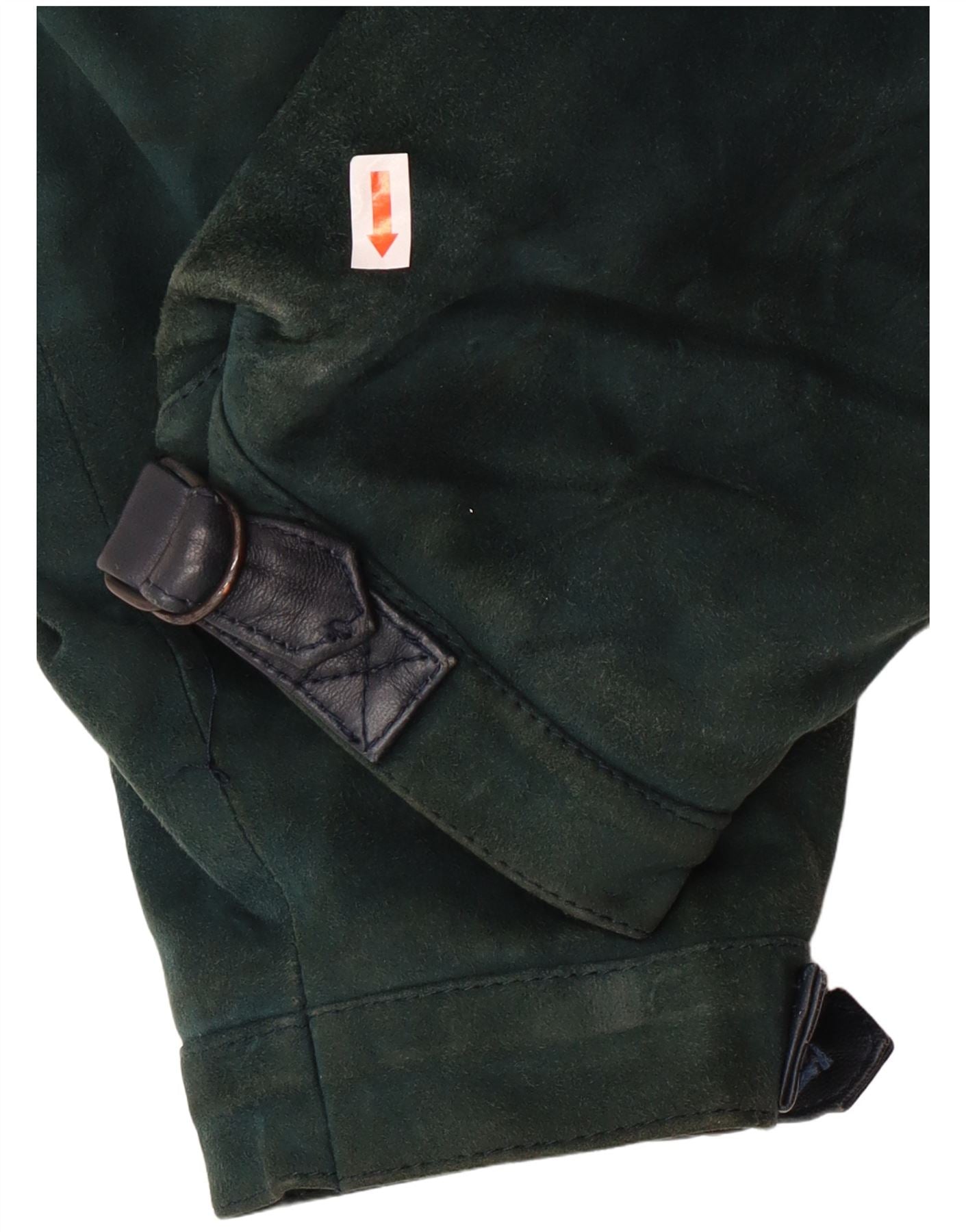 VINTAGE Womens Crop Leather Jacket UK 6 XS Navy Blue