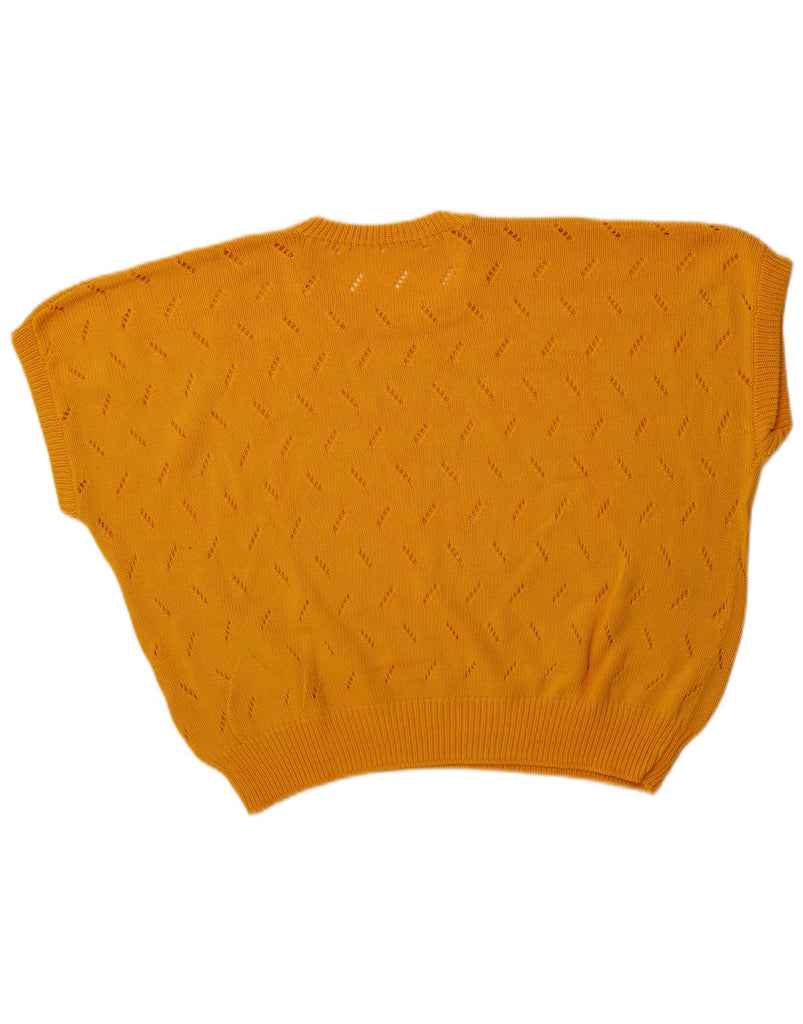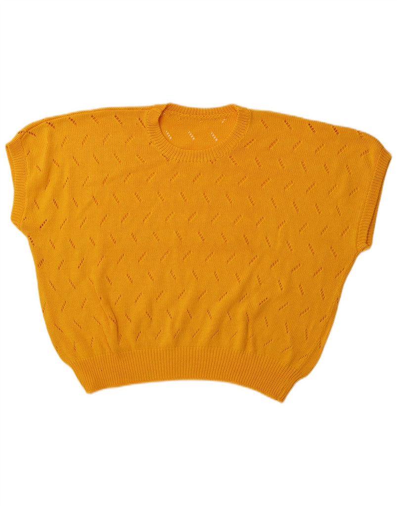 VINTAGE Womens Crop Short Sleeve Crew Neck Jumper Sweater UK 20 2XL Yellow