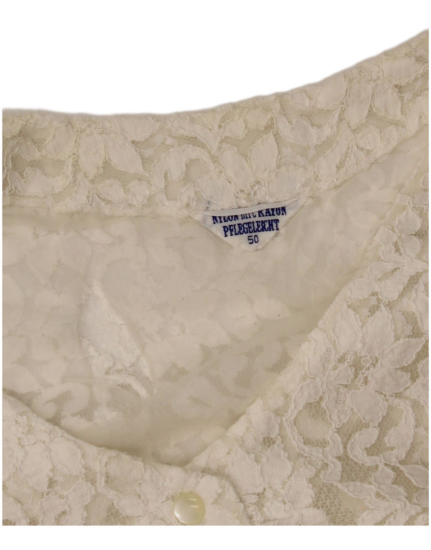 VINTAGE Womens Crop Sleeveless Shirt Blouse IT 50 XL Off White Floral