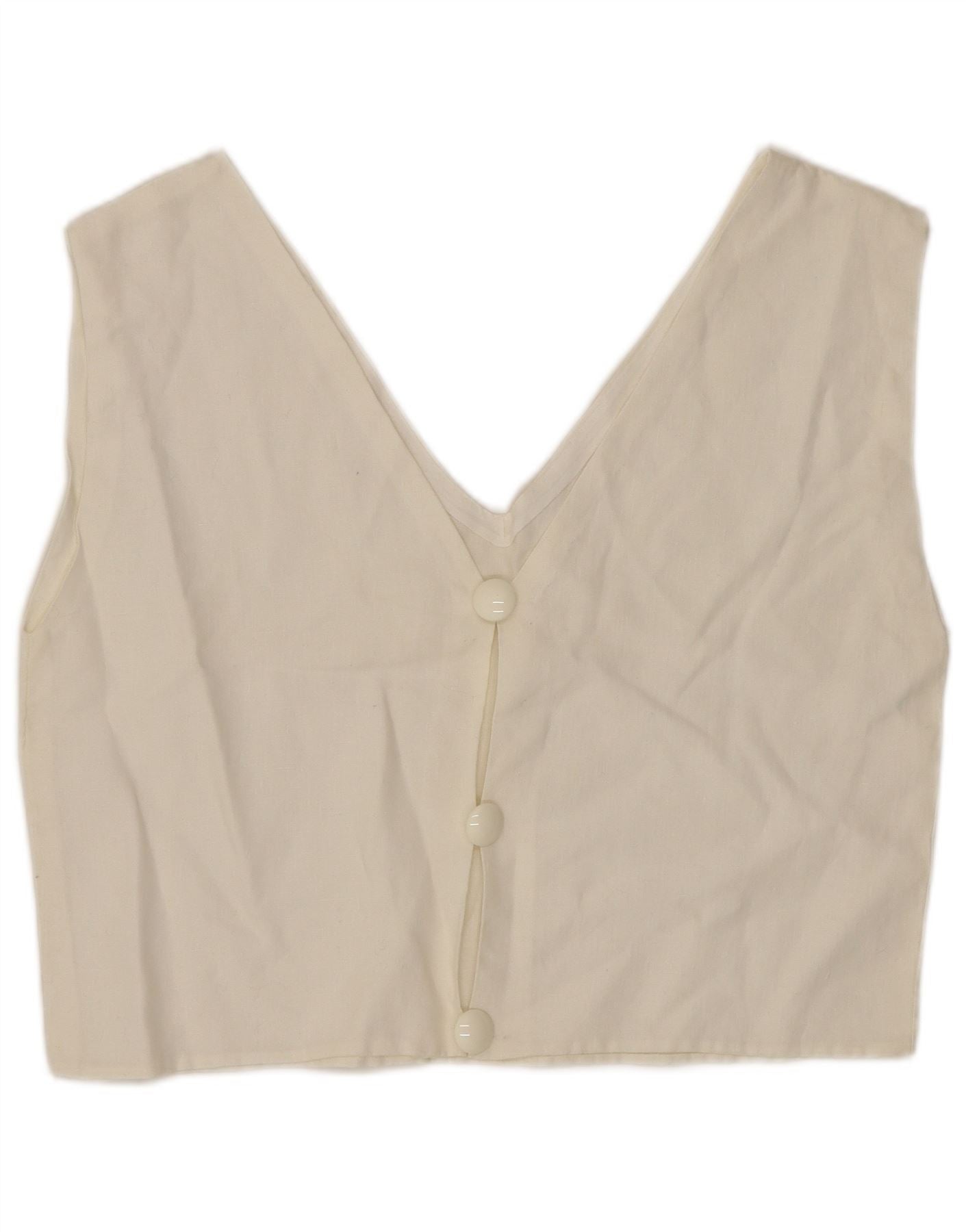 VINTAGE Womens Crop Sleeveless Shirt Blouse UK 12 Medium White
