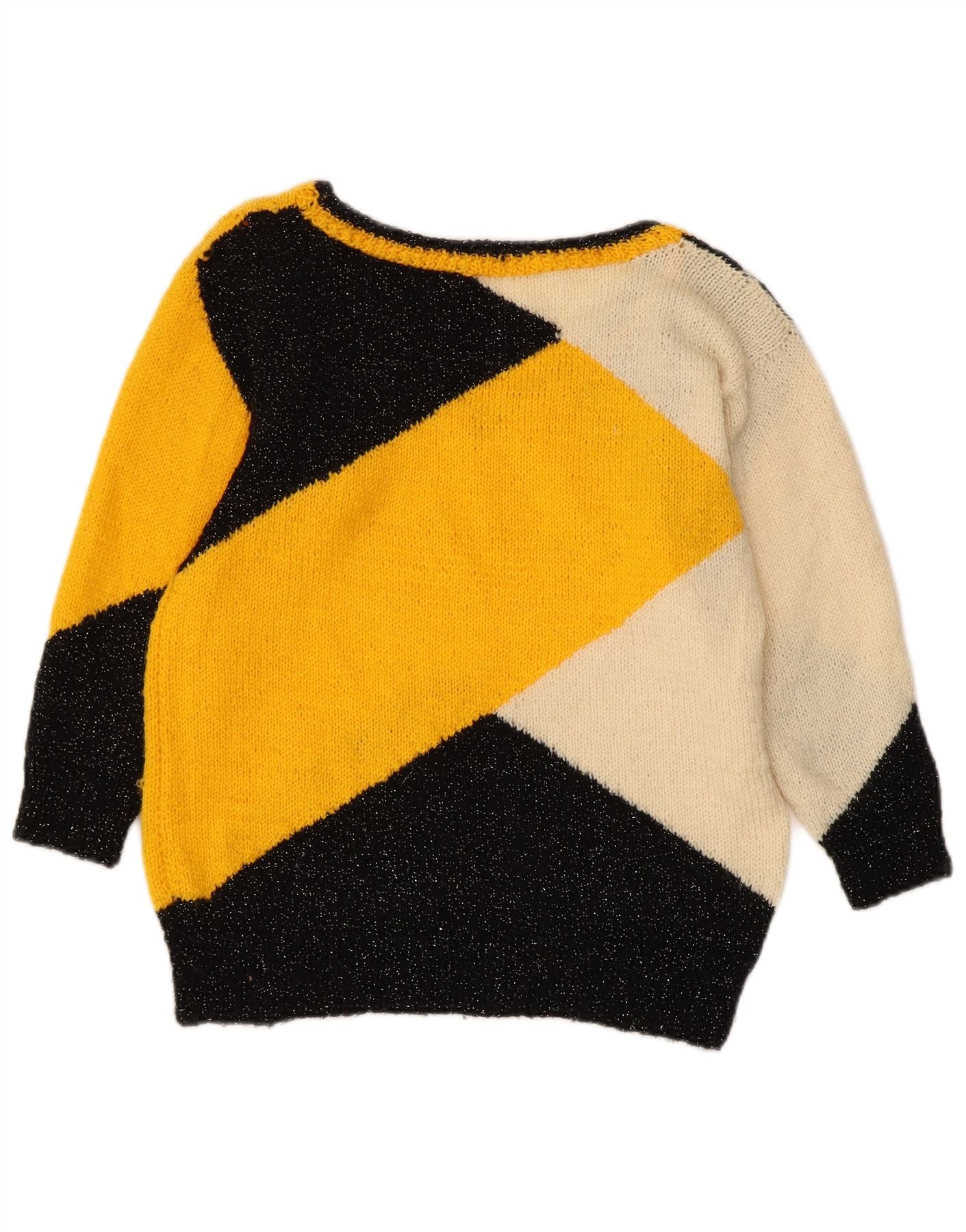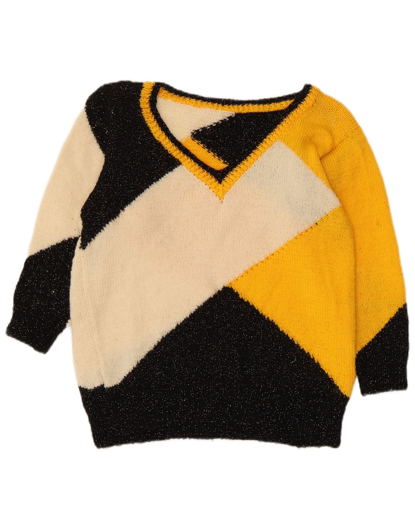 VINTAGE Womens Crop V-Neck Jumper Sweater UK 8 Small Yellow Colourblock