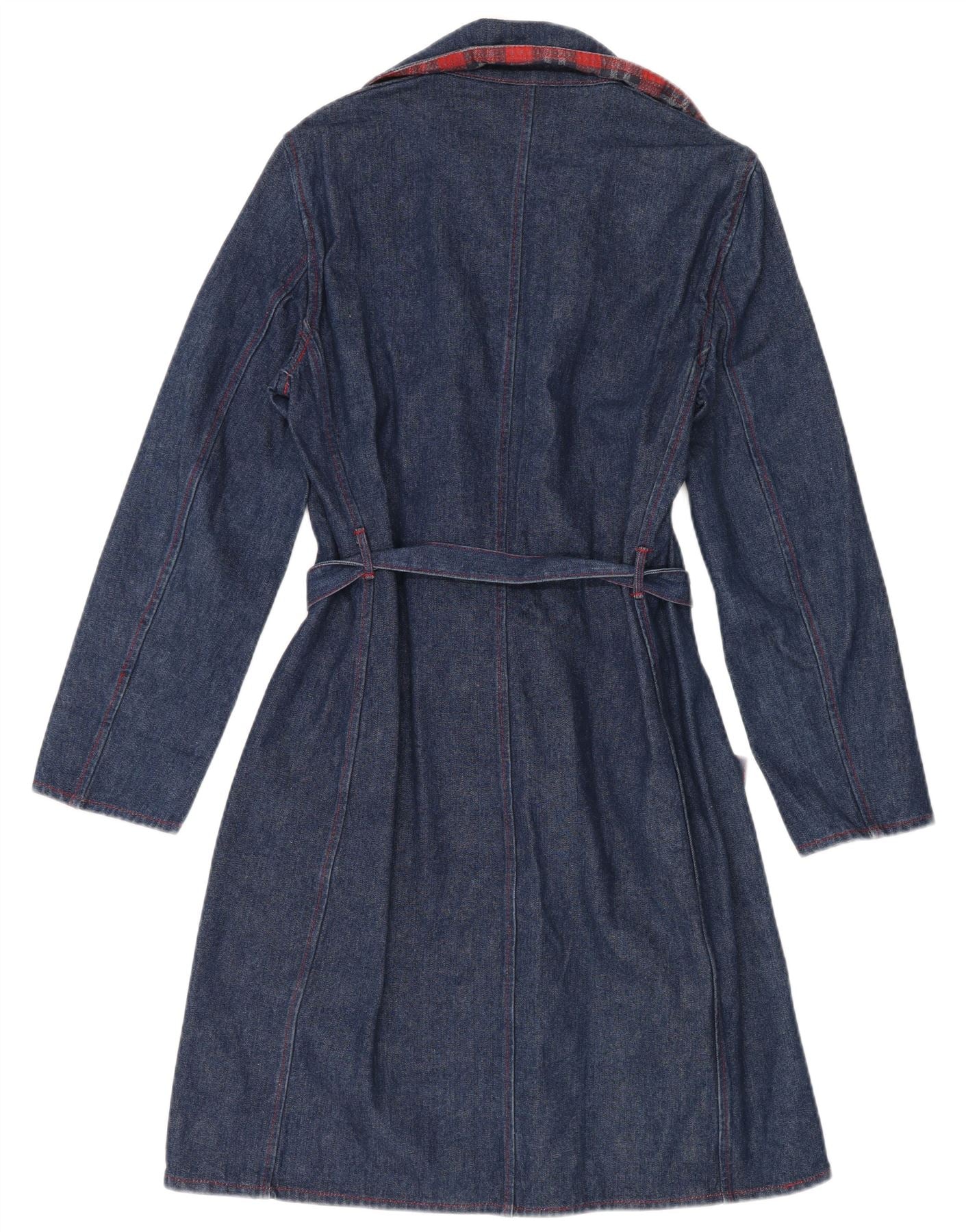 VINTAGE Womens Denim Coat UK 14 Medium Navy Blue