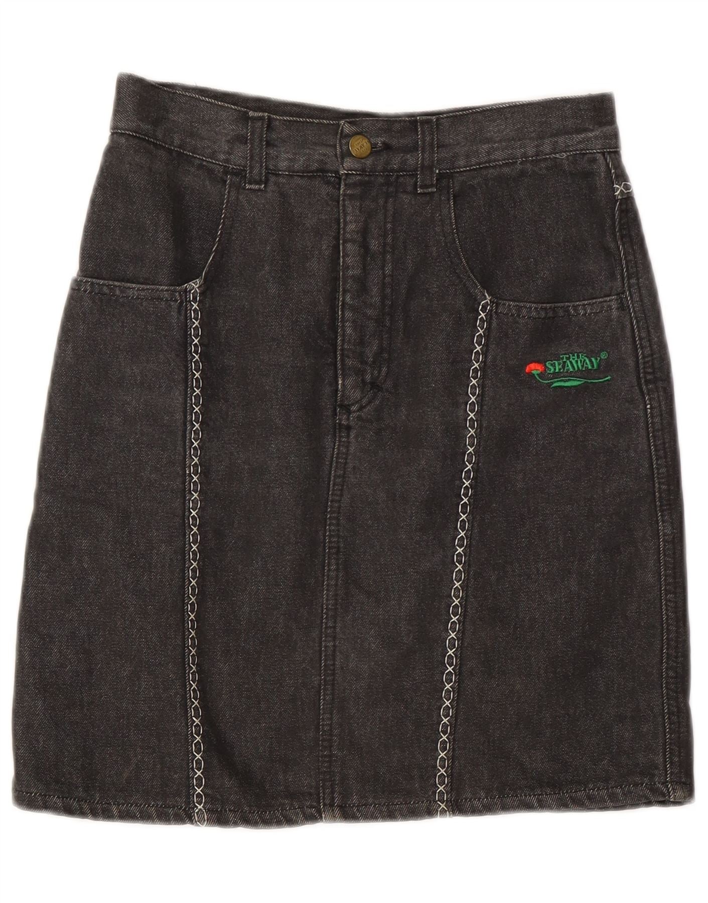 VINTAGE Womens Denim Skirt W30 Medium Grey