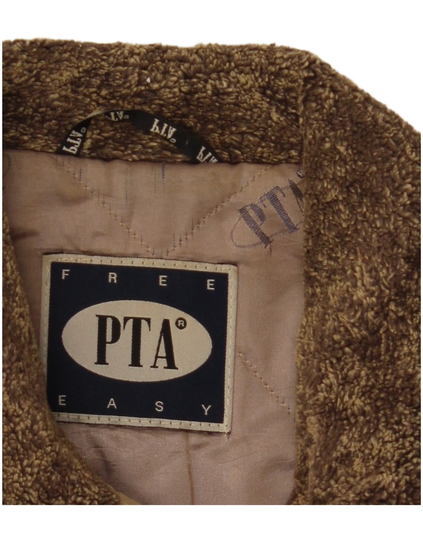 VINTAGE Womens Double Breasted Leather Coat UK 6 XS Brown Colourblock