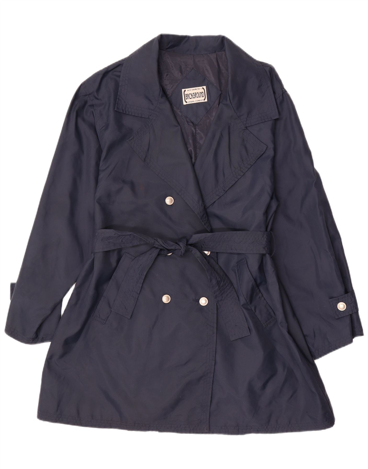 VINTAGE Womens Double Breasted Trench Coat UK 12 Medium Navy Blue