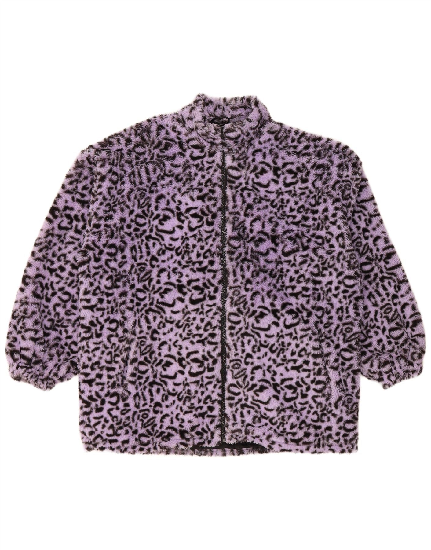 VINTAGE Womens Faux Fur Bomber Jacket UK 18 XL Purple Animal Print