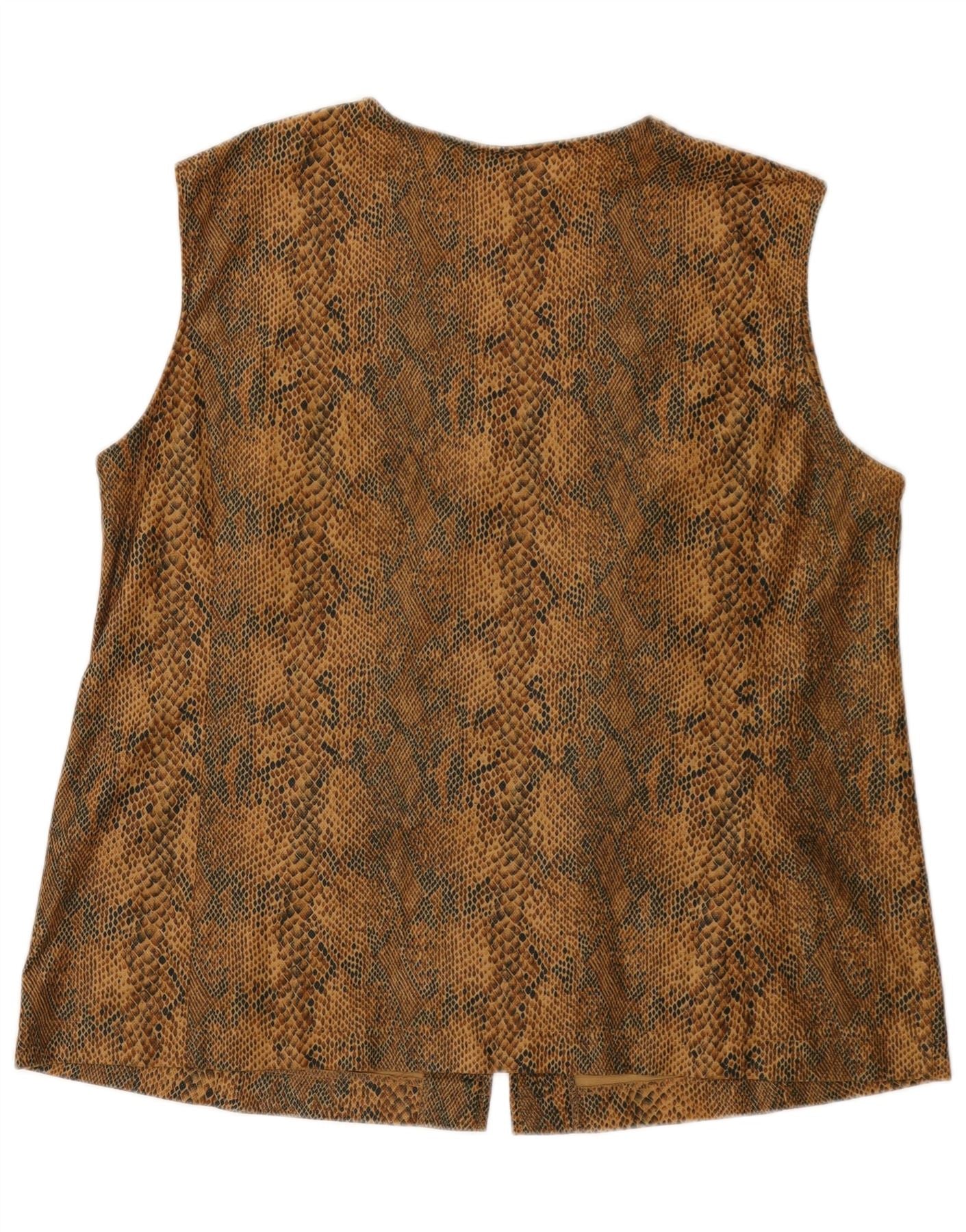 VINTAGE Womens Gilet UK 18 XL Brown Animal Print Polyester