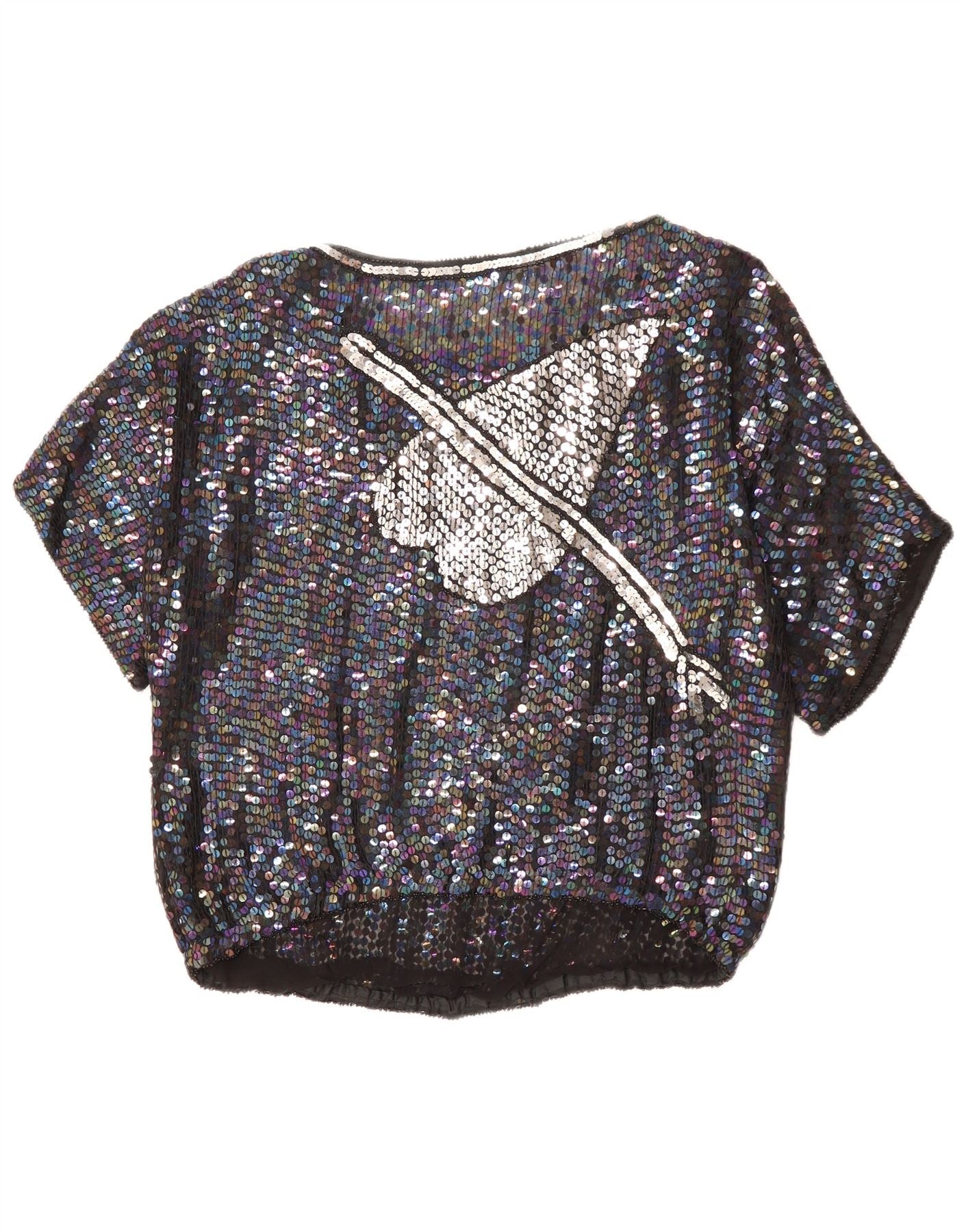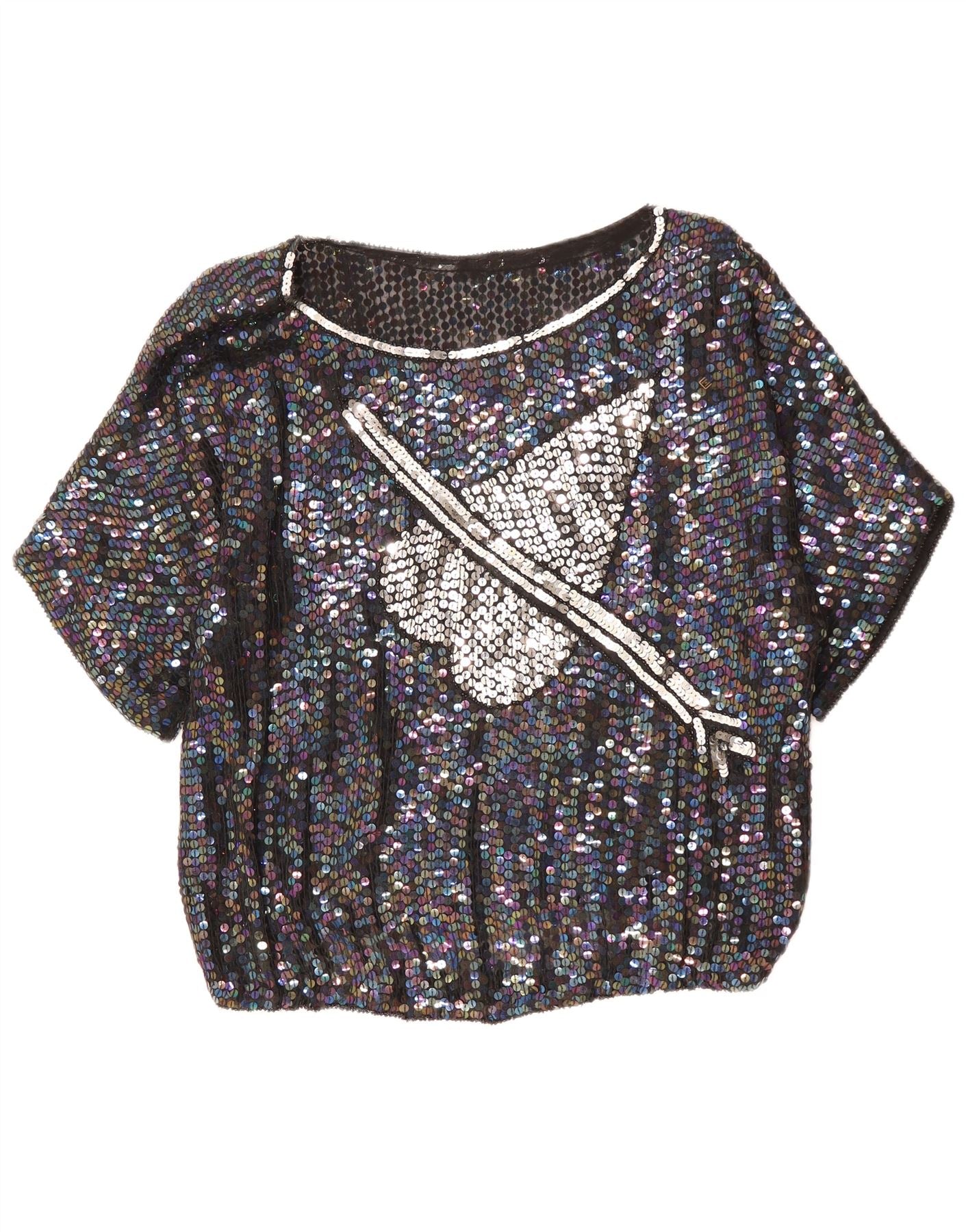 VINTAGE Womens Graphic Blouse Top UK 14 Large Black Flecked Heart