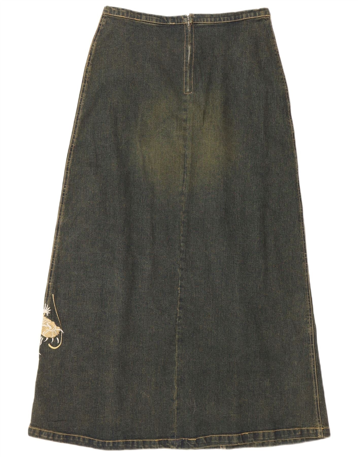 VINTAGE Womens Graphic Denim Skirt UK 12 Medium W30 Blue Cotton