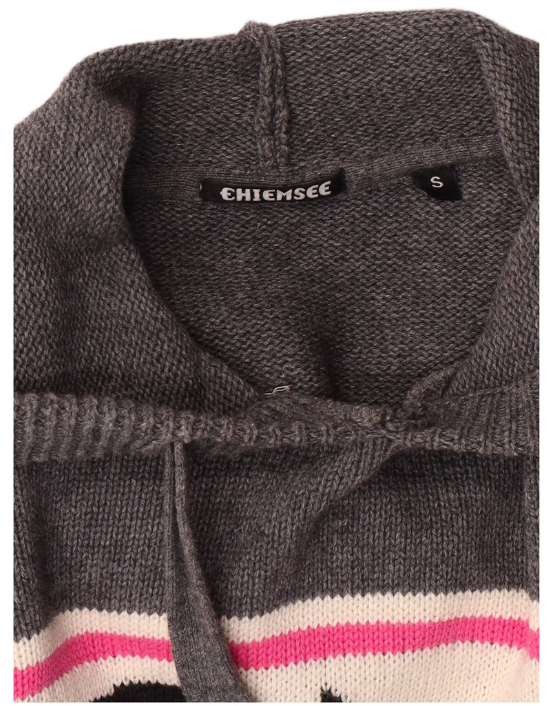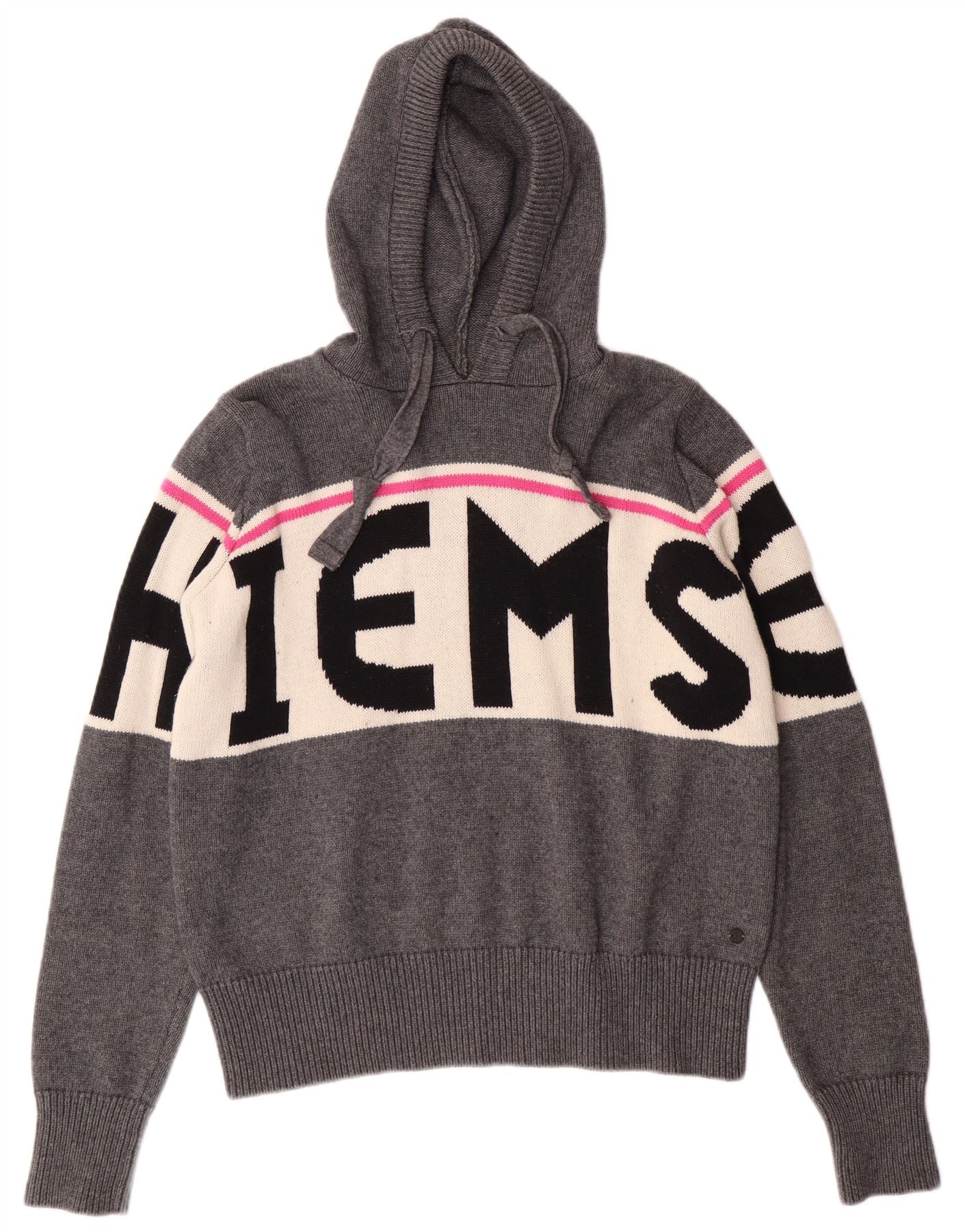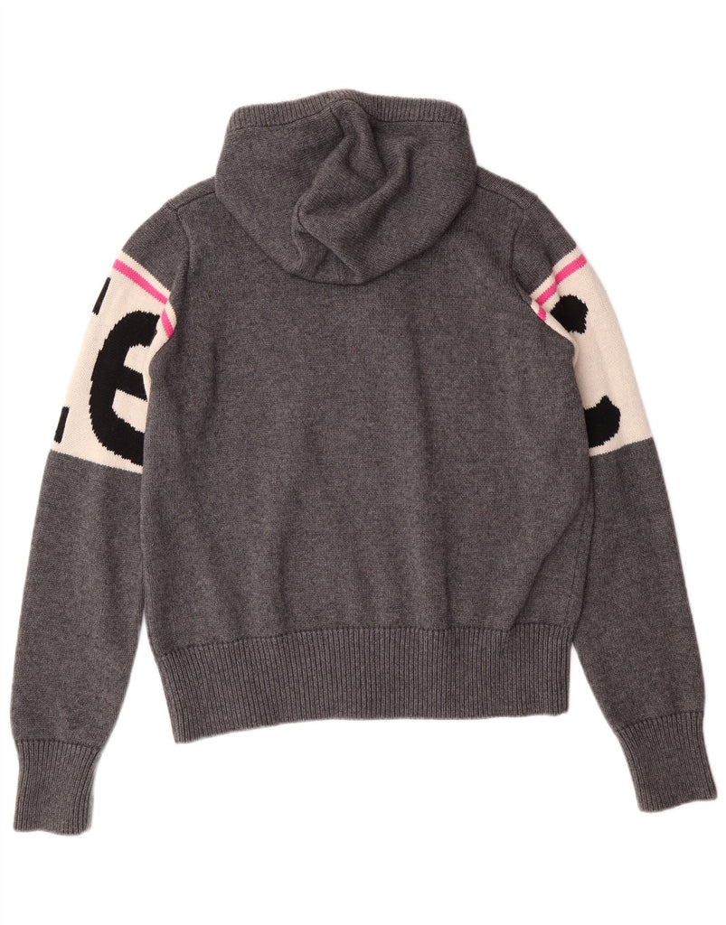 VINTAGE Womens Graphic Hooded Jumper Sweater UK 10 Small Grey Colourblock