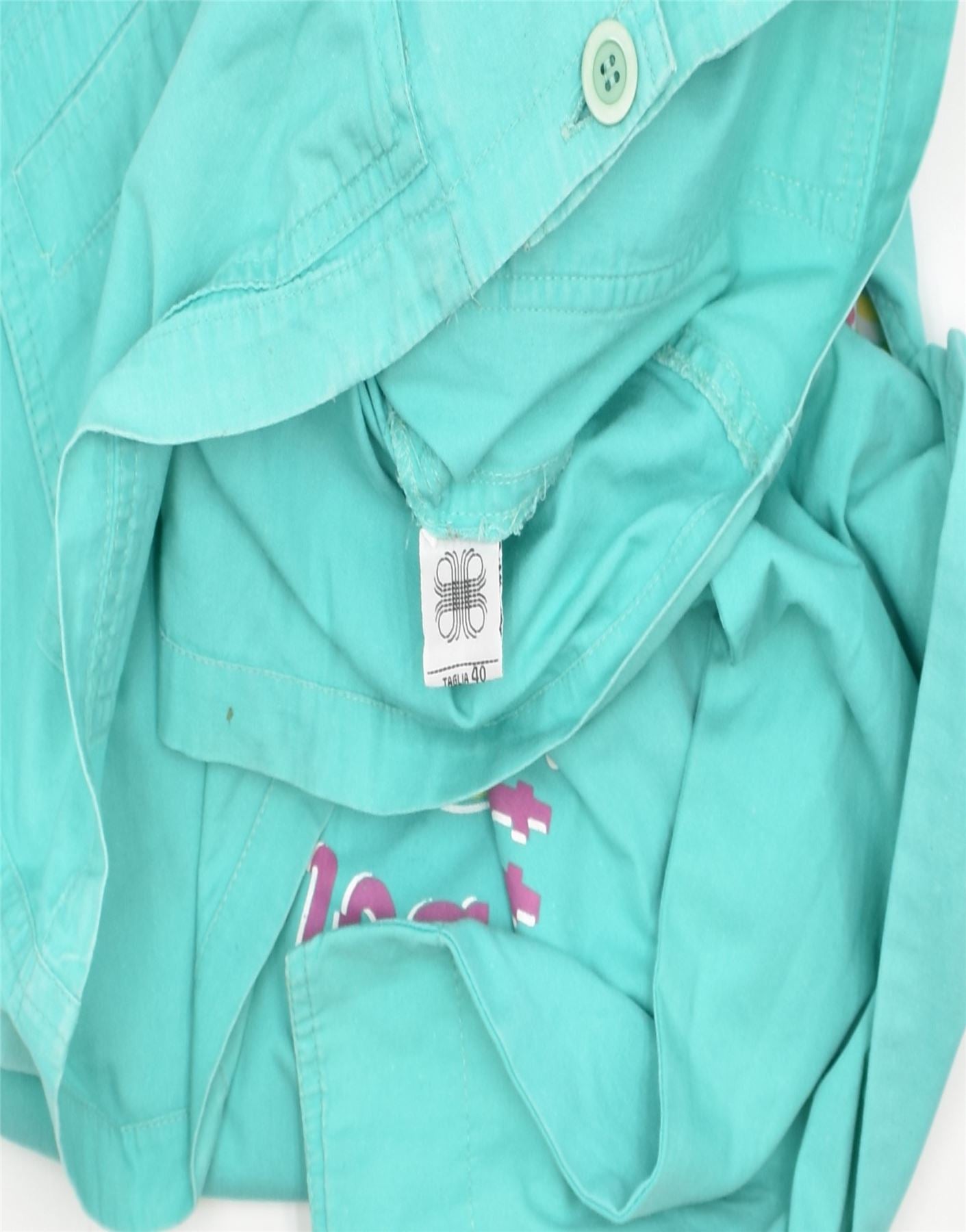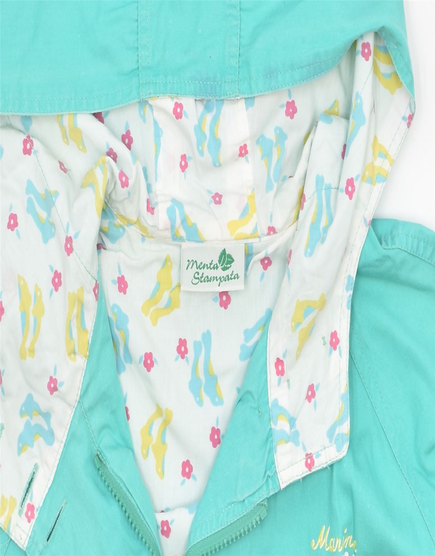 VINTAGE Womens Graphic Hooded Overcoat IT 40 Small Turquoise Cotton