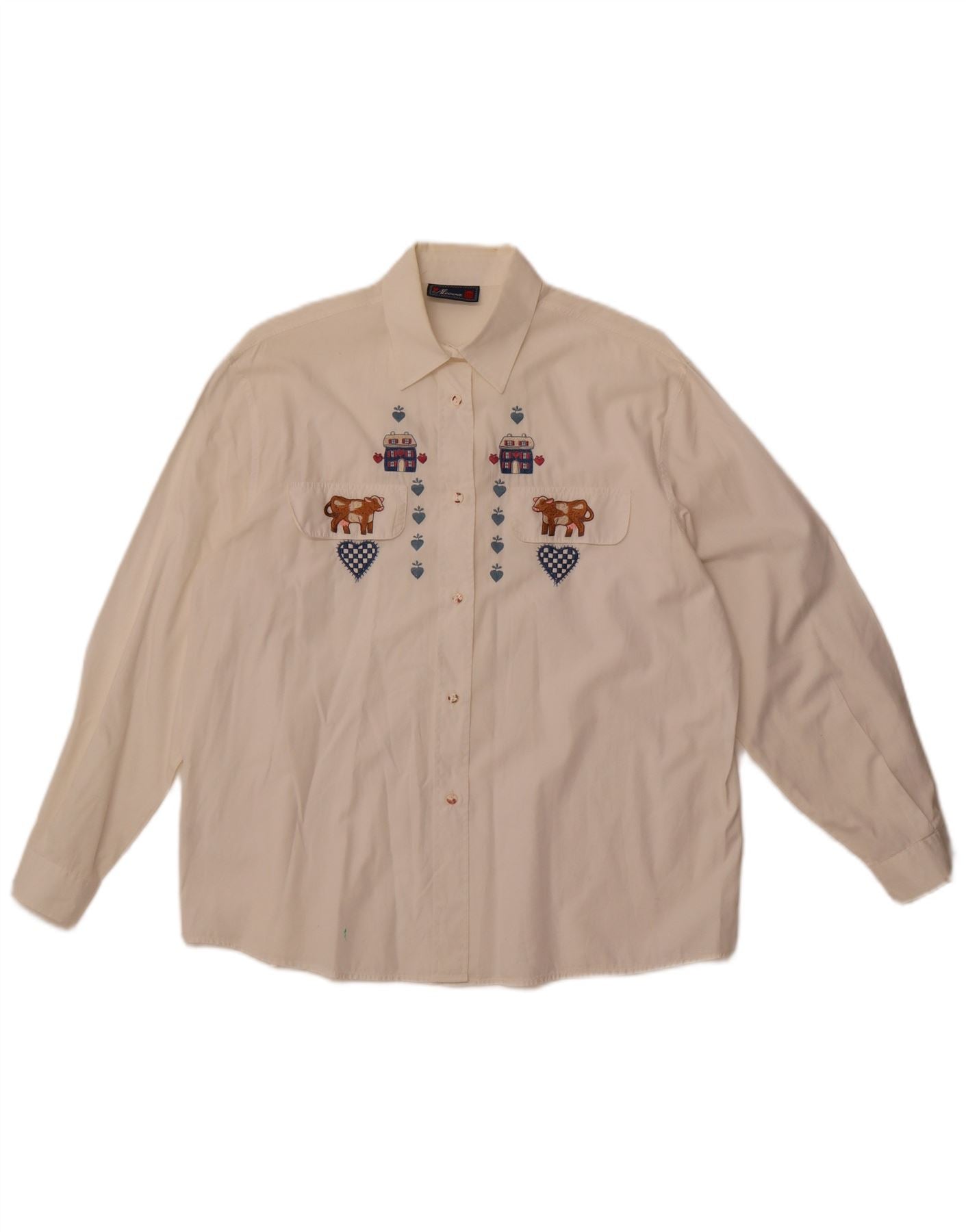 Vintage Womens Graphic Shirt UK 14 Large White Cotton