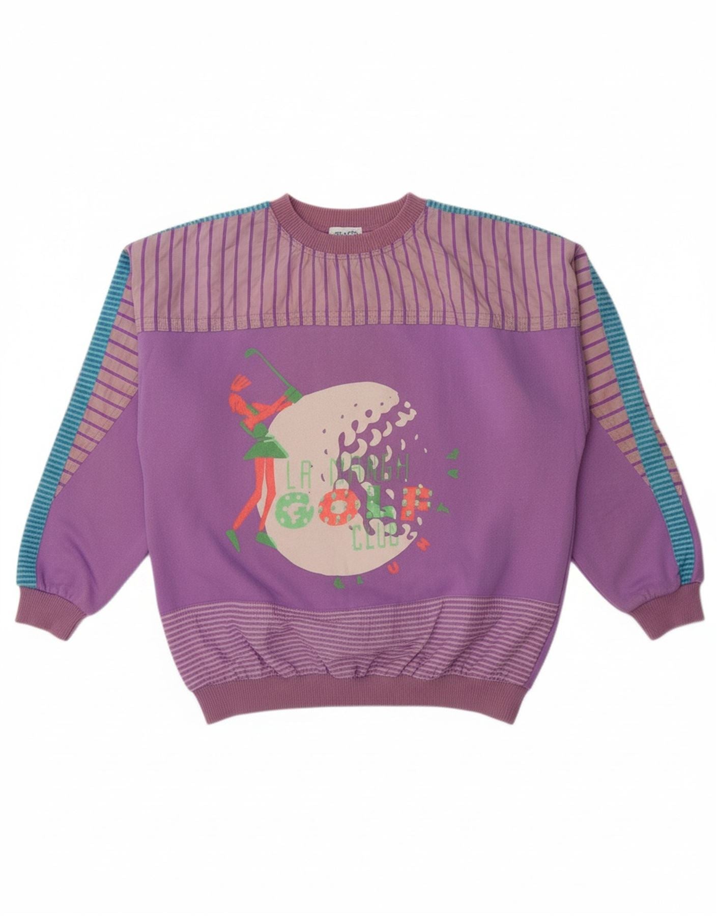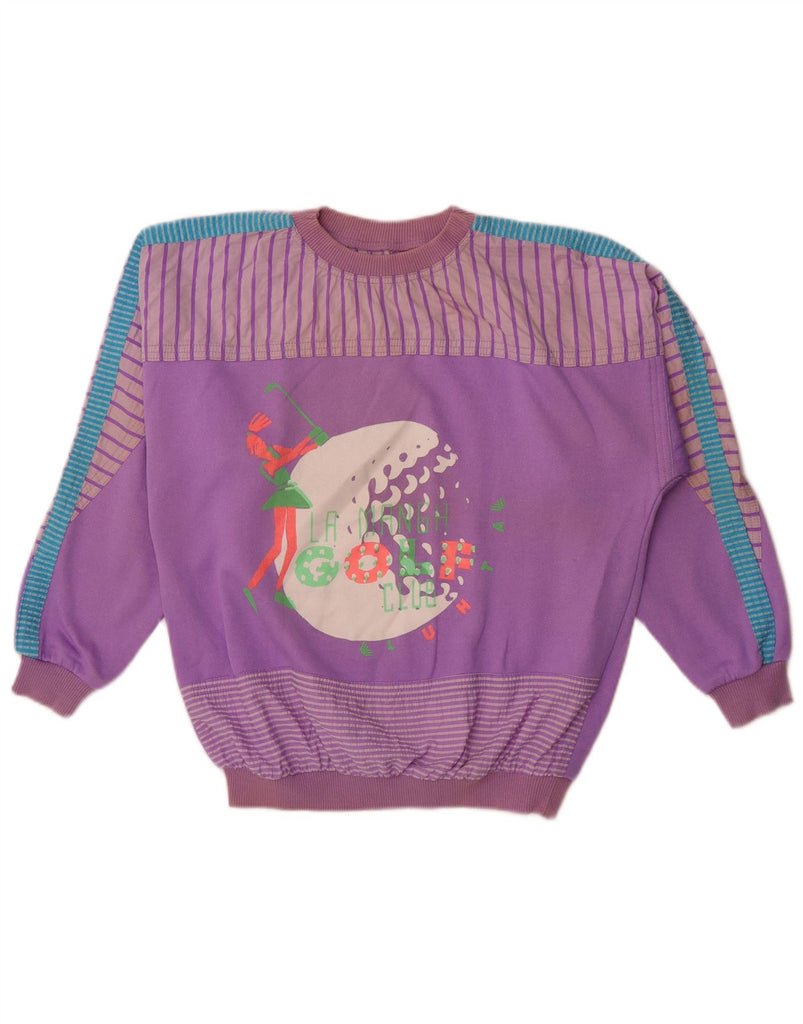 VINTAGE Womens Graphic Sweatshirt Jumper UK 14 Medium Purple Striped