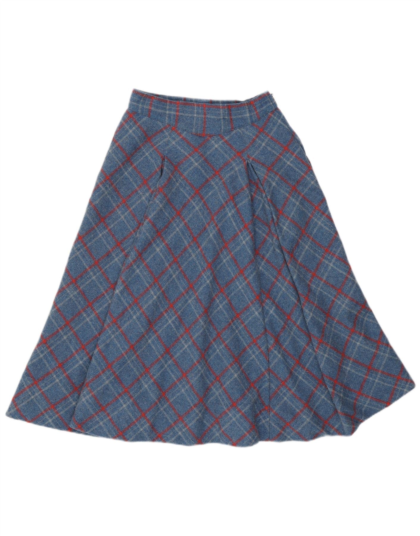 VINTAGE Womens High Waist A-Line Skirt W24 XS Blue Check