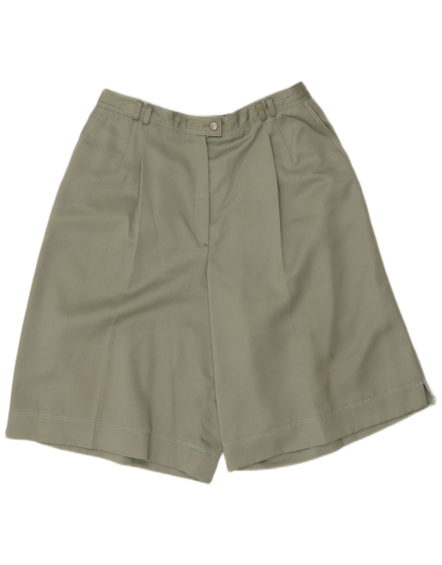 VINTAGE Womens High Waist Bermuda Shorts UK 18 XL W34 Green Lyocell