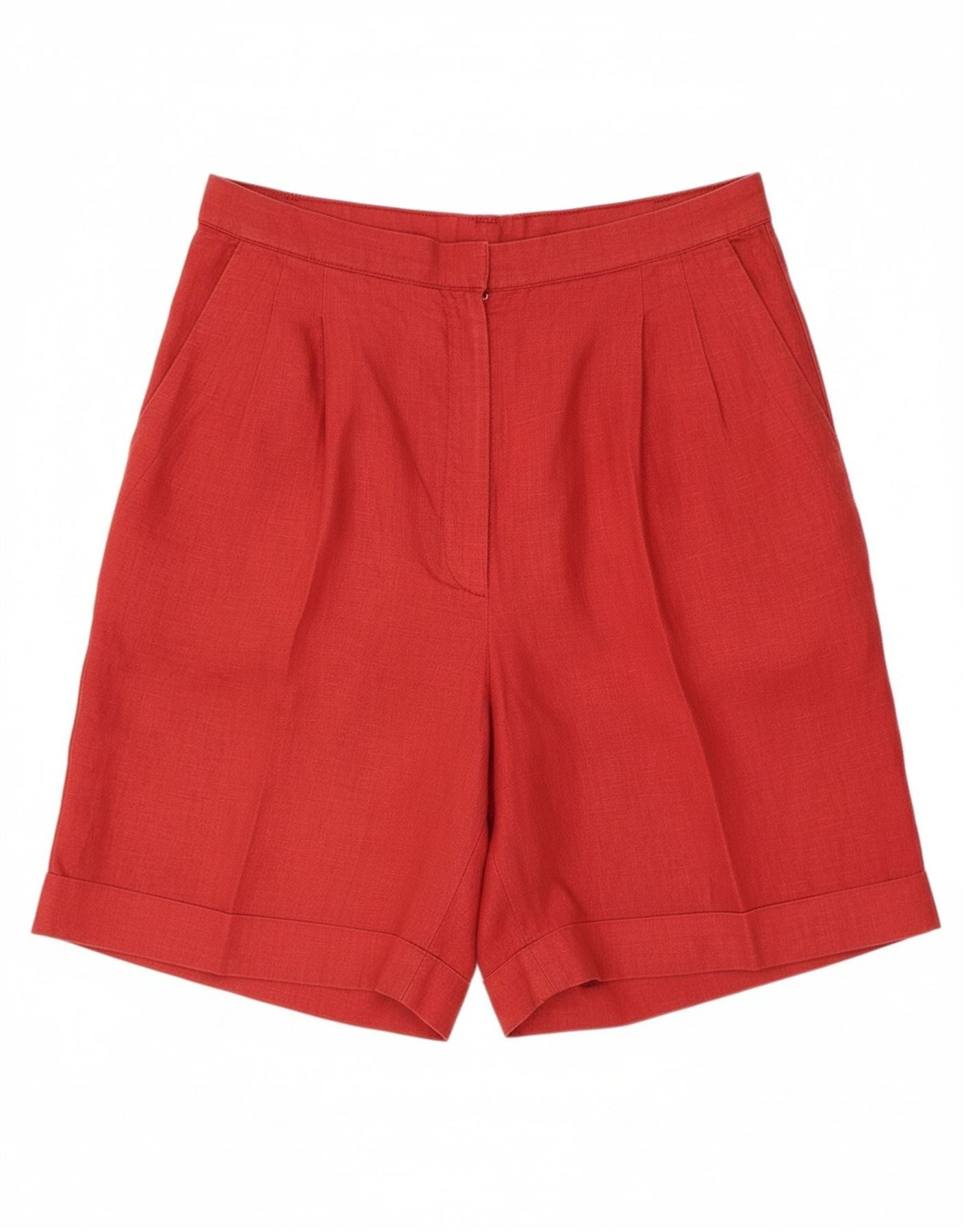 VINTAGE Womens High Waist Chino Shorts US 12 Large W30 Red Linen Classic