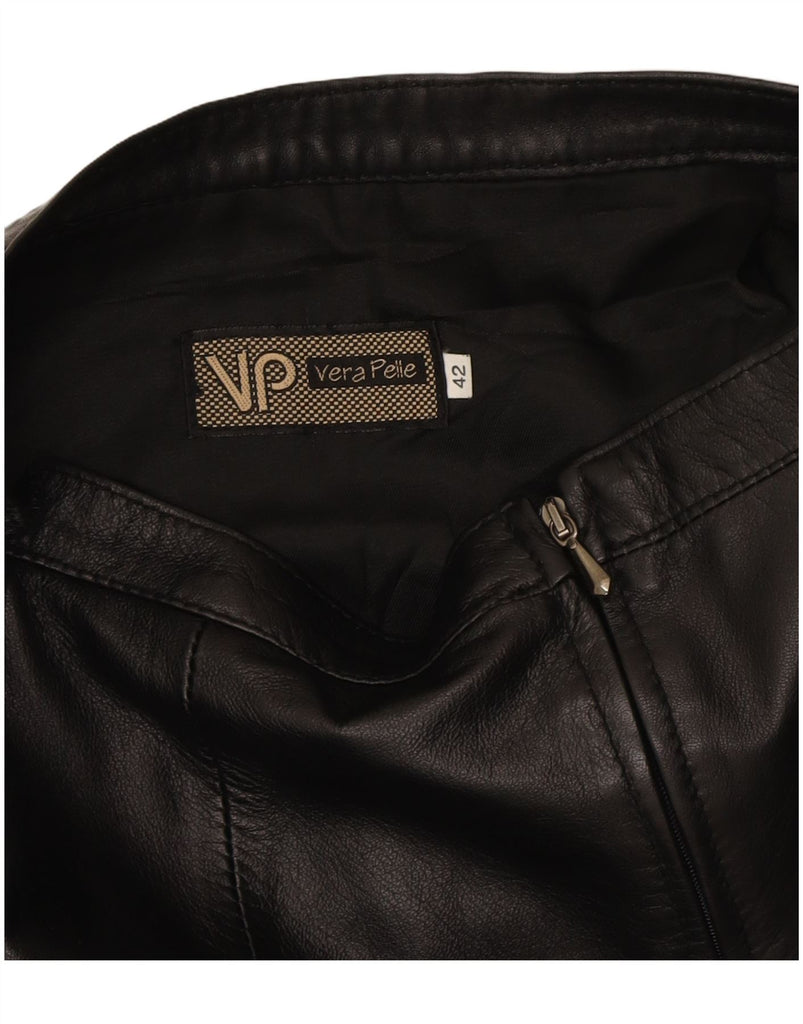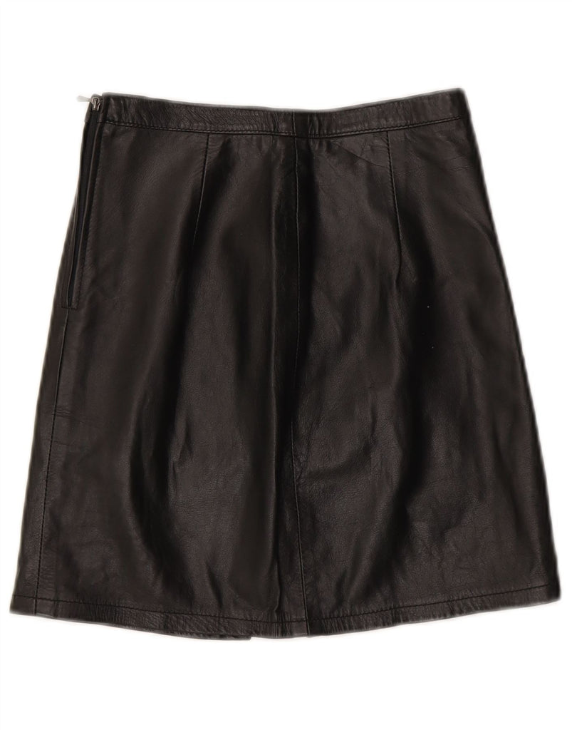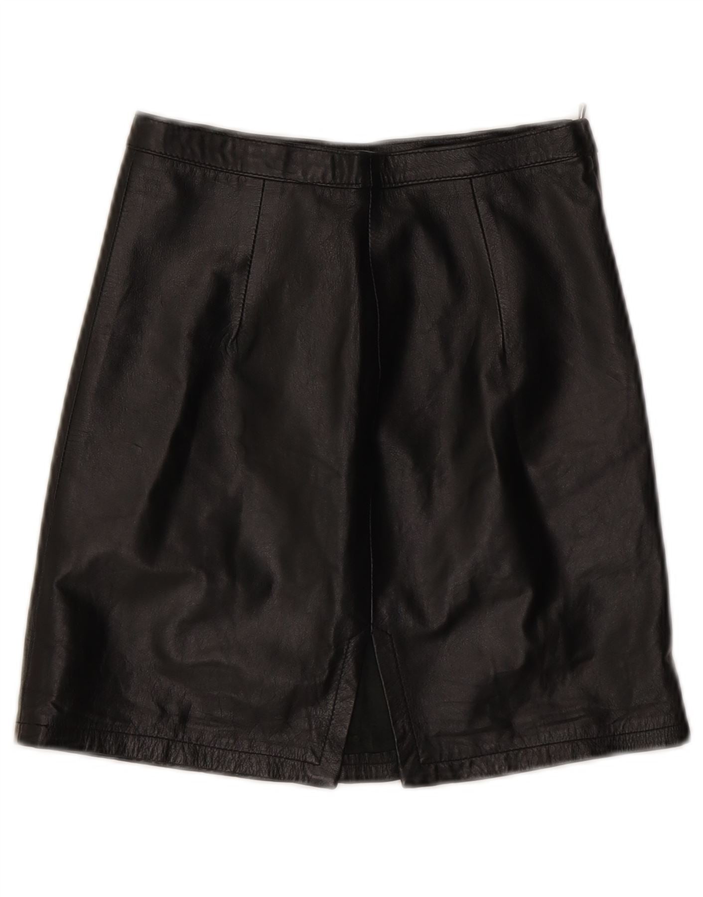 VINTAGE Womens High Waist Leather Skirt IT 42 Medium W25 Black Leather