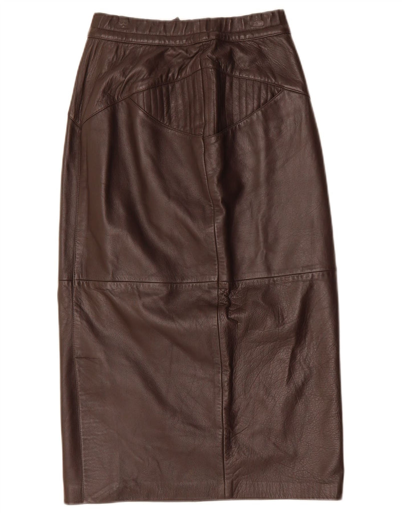 VINTAGE Womens High Waist Leather Skirt IT 42 Medium W25 Brown Leather