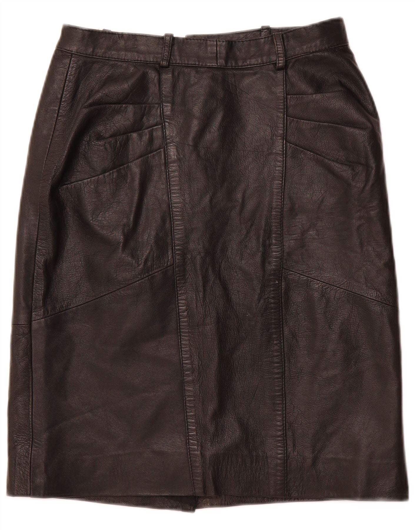 VINTAGE Womens High Waist Leather Skirt IT 48 XL W28 Black Leather