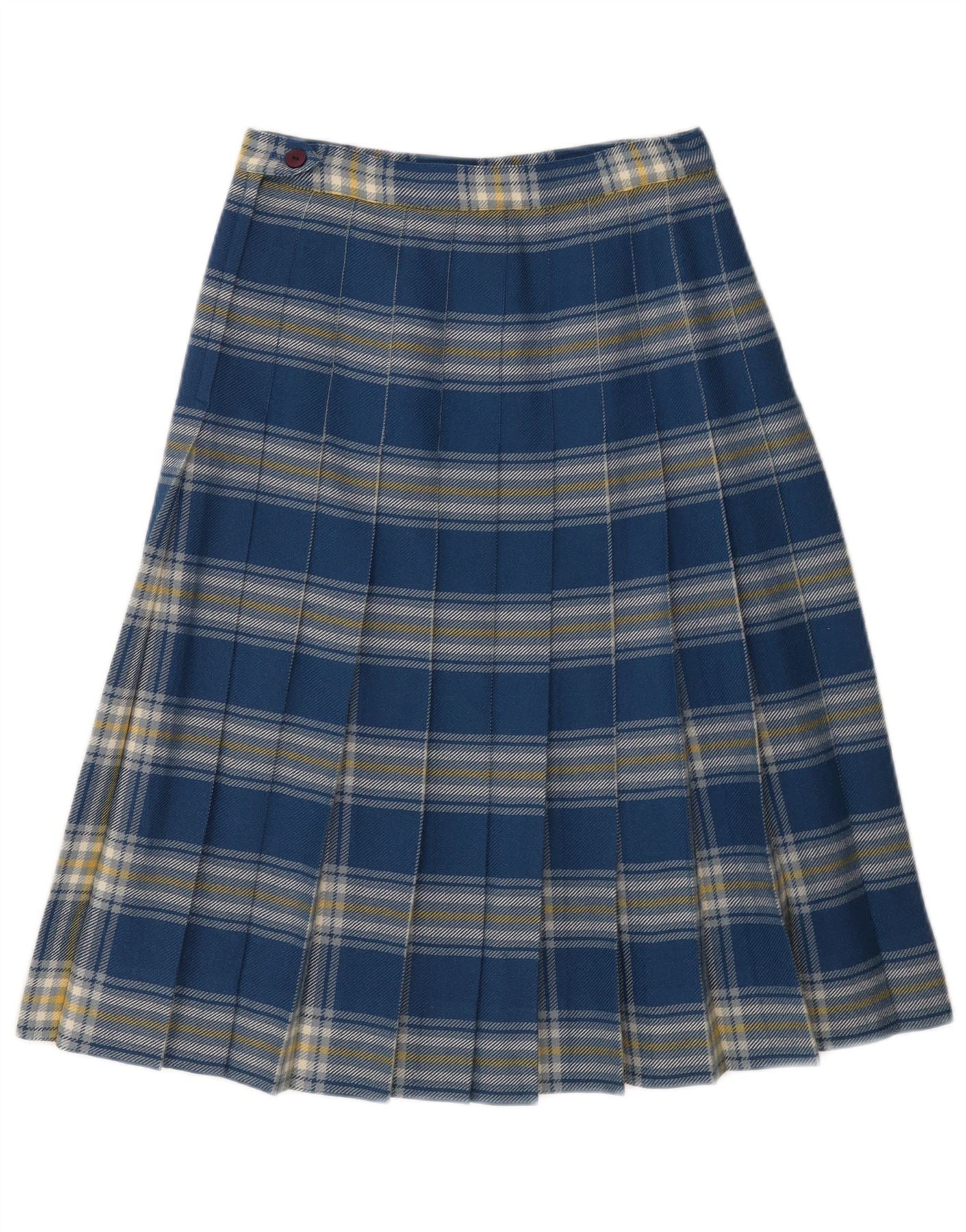VINTAGE Womens High Waist Pleated A-Line Skirt W26 Small Blue Plaid