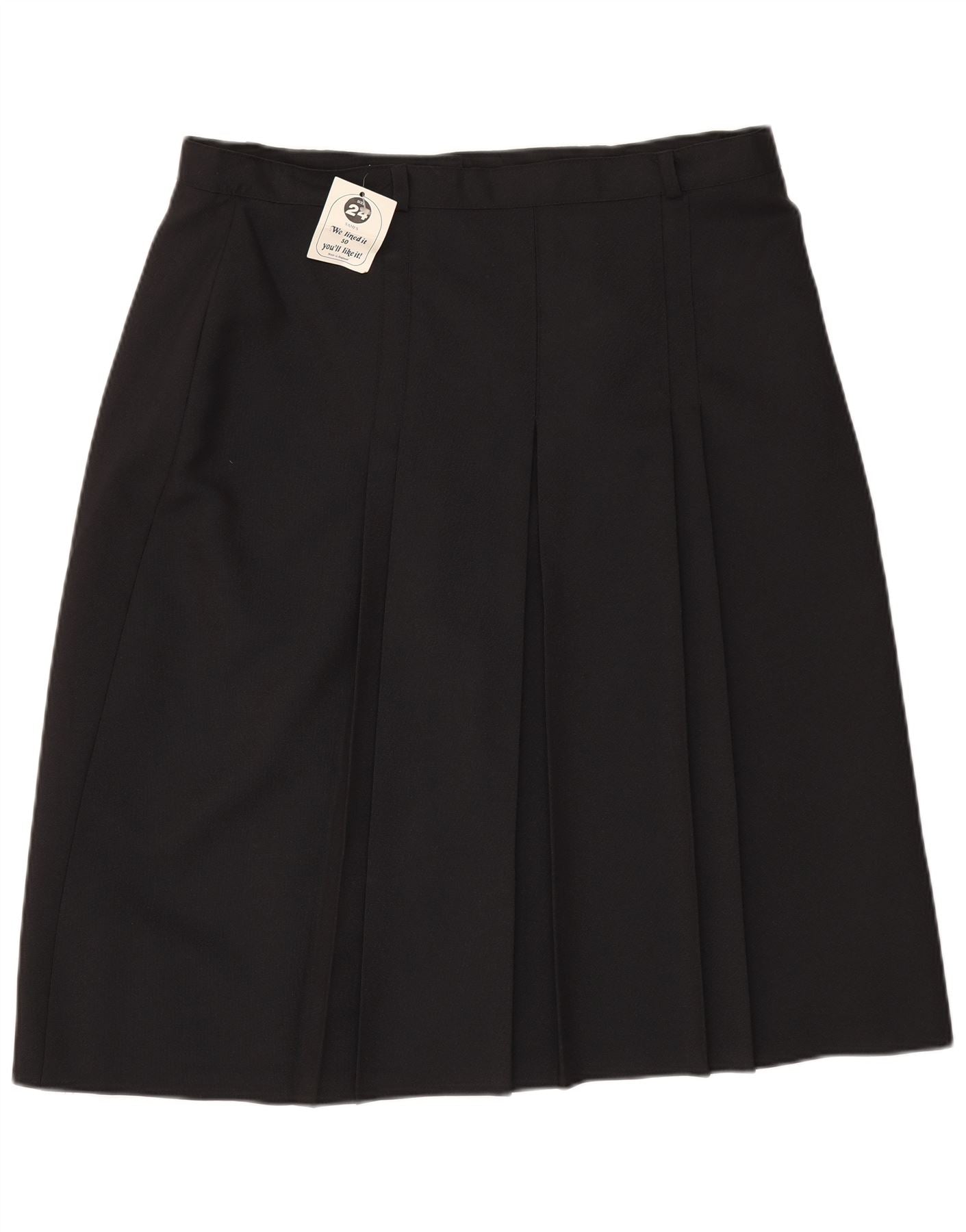 VINTAGE Womens High Waist Pleated Skirt UK 24 4XL W38 Black Polyester