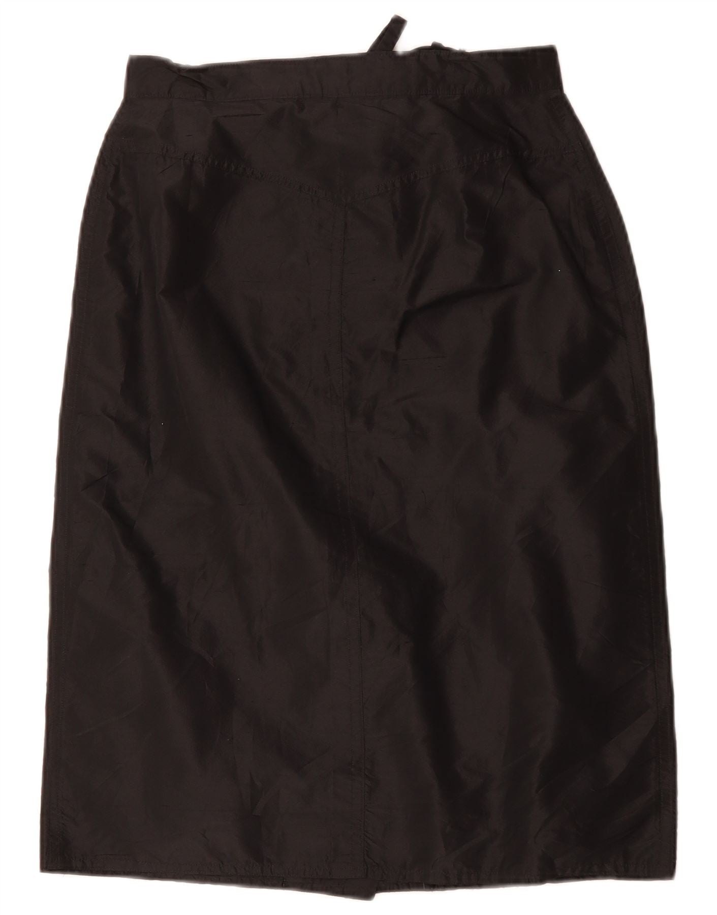- AI Description: This Vintage womens pencil skirt is crafted from sleek black satin, offering a smooth, lustrous finish. It features a high waist and a slim fit, creating a refined silhouette. The front is detailed with a full button closure. An adjustable waist ensures a comfortable, tailored fit. This classic style offers timeless elegance.