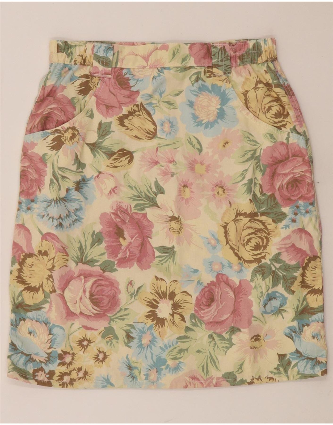 VINTAGE Womens High Waist Straight Skirt W30 Medium Yellow Floral