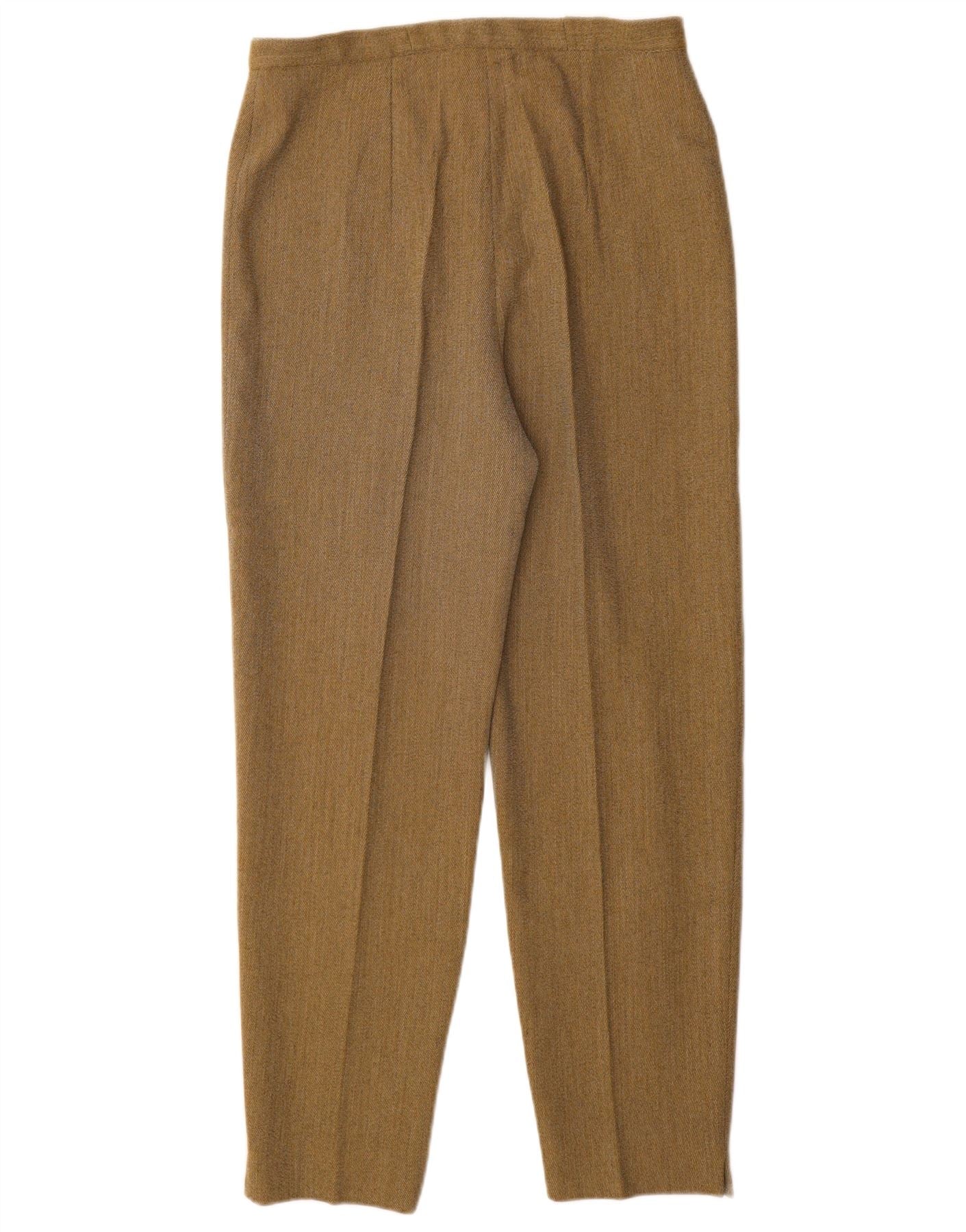 VINTAGE Womens High Waist Tapered Casual Trousers W28 L29 Beige Pinstripe