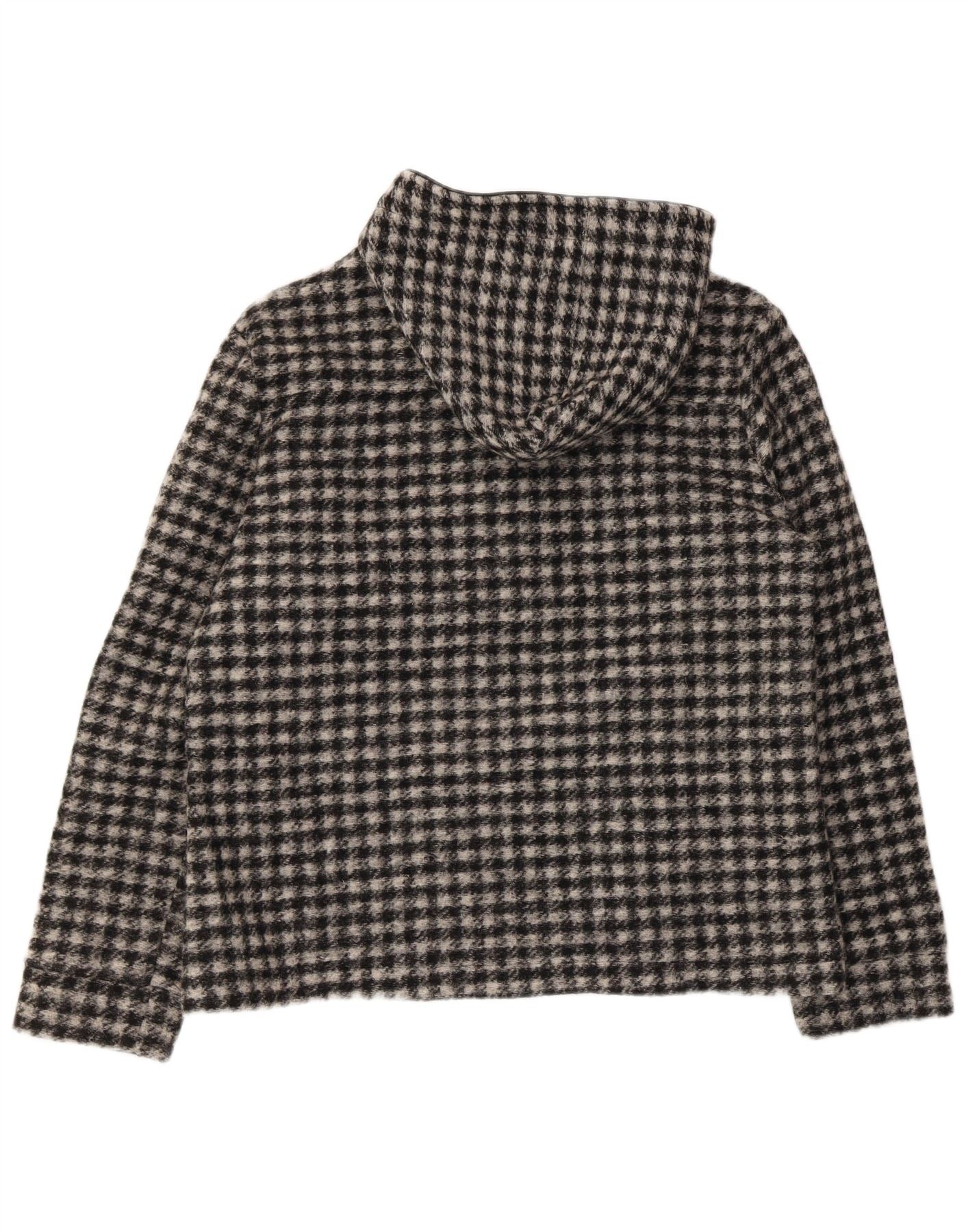 VINTAGE Womens Hooded Bomber Jacket UK 18 XL Black Check Wool