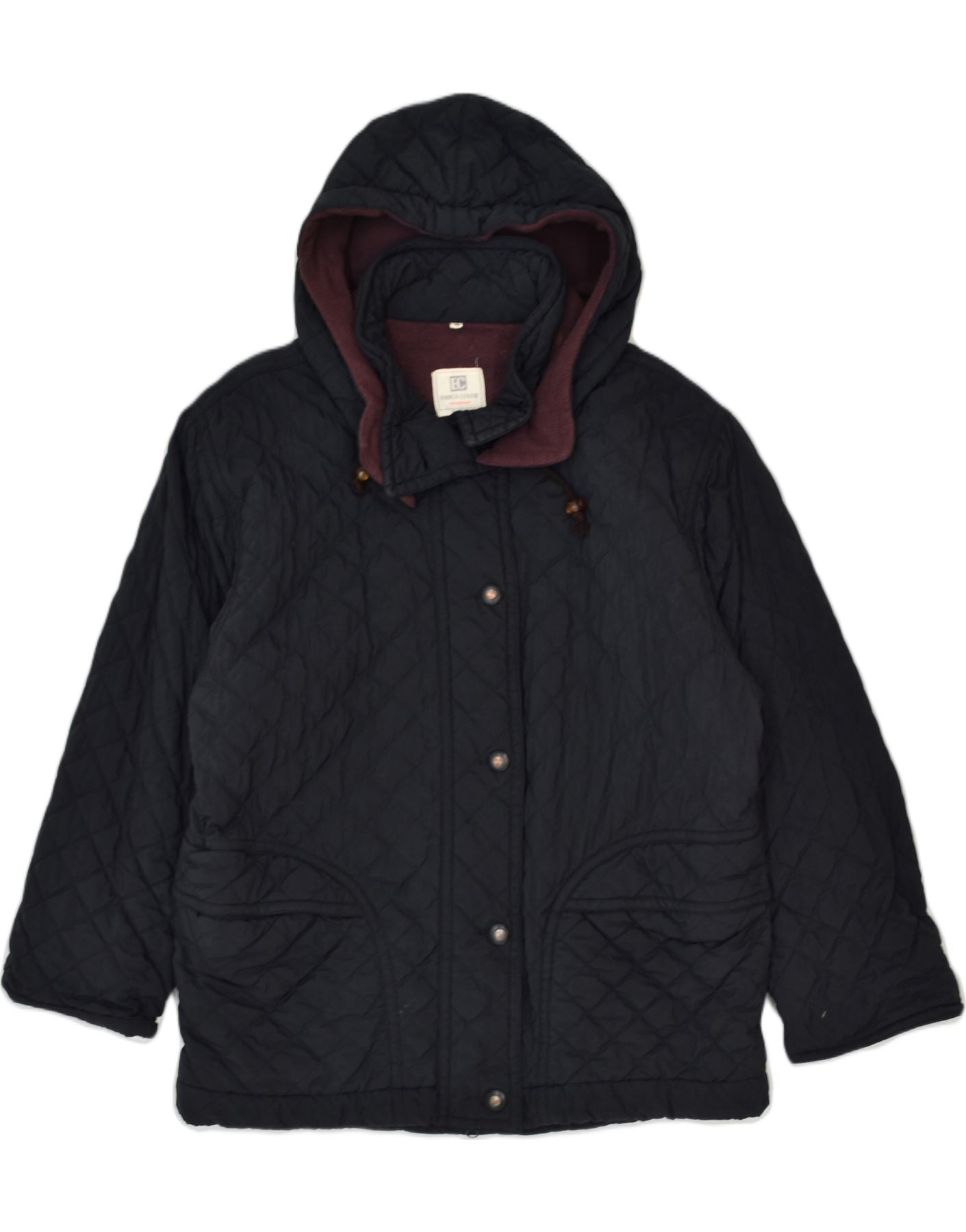 VINTAGE Womens Hooded Quilted Jacket IT 46 Large Navy Blue Nylon