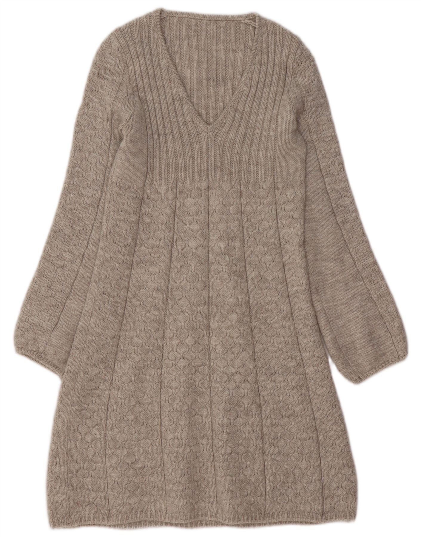 VINTAGE Womens Jumper Dress UK 10 Small Beige Acrylic