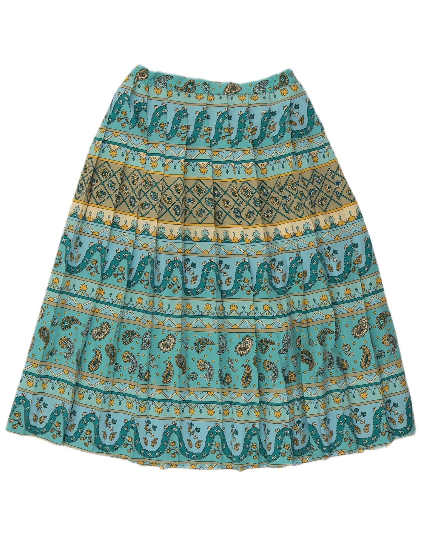 VINTAGE Womens Knife Pleated Skirt W32 Large Turquoise Paisley Polyester