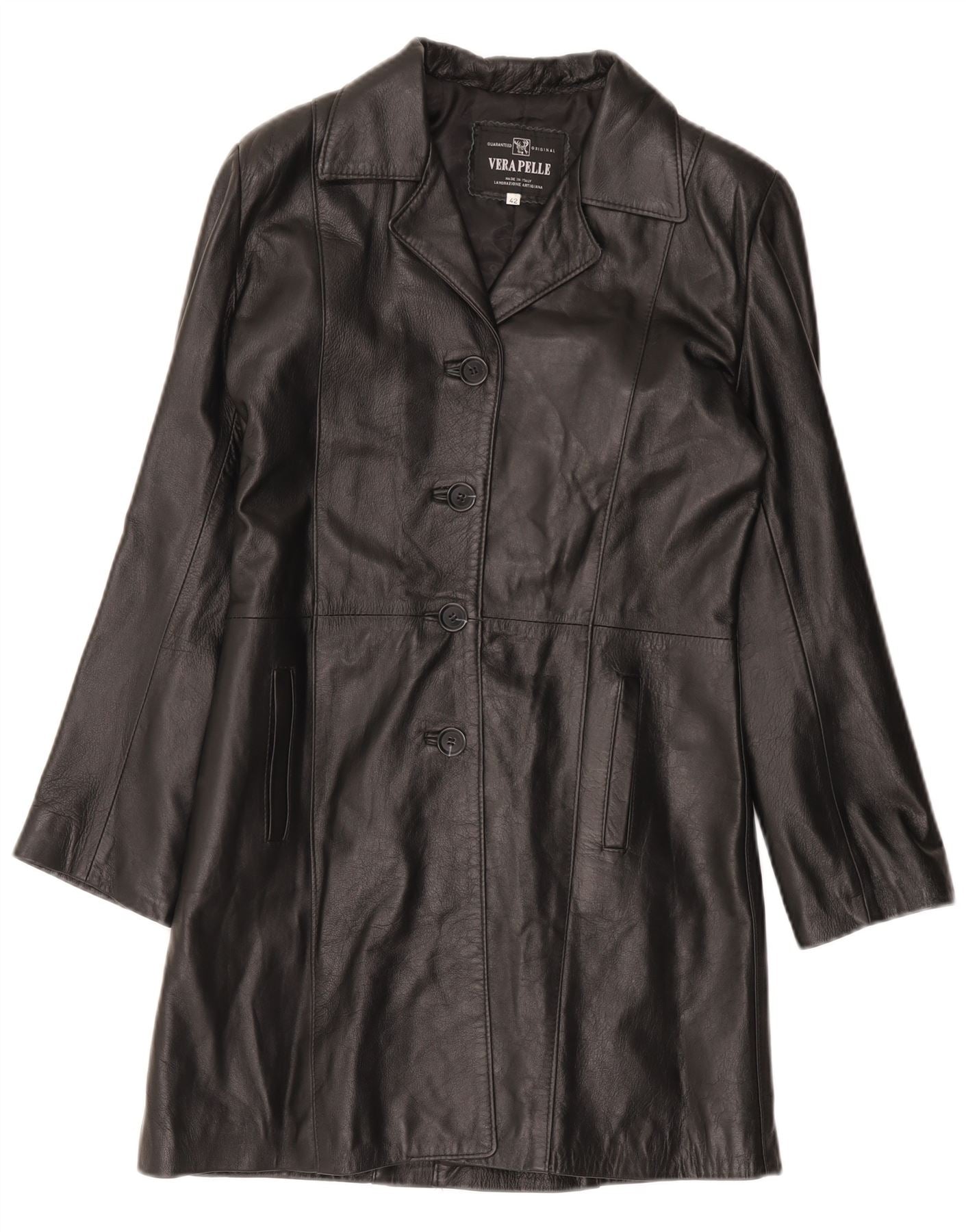 VINTAGE Womens Leather Coat IT 42 Medium Black Leather