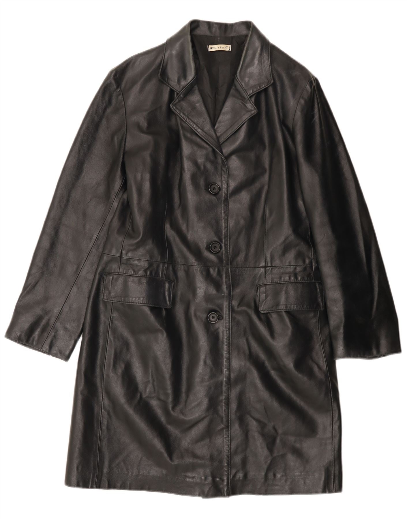 VINTAGE Womens Leather Coat IT 46 Large Black Leather