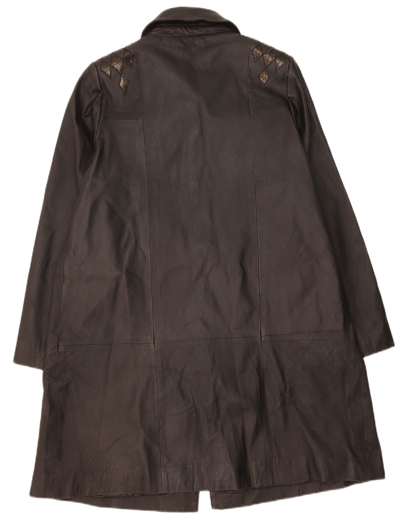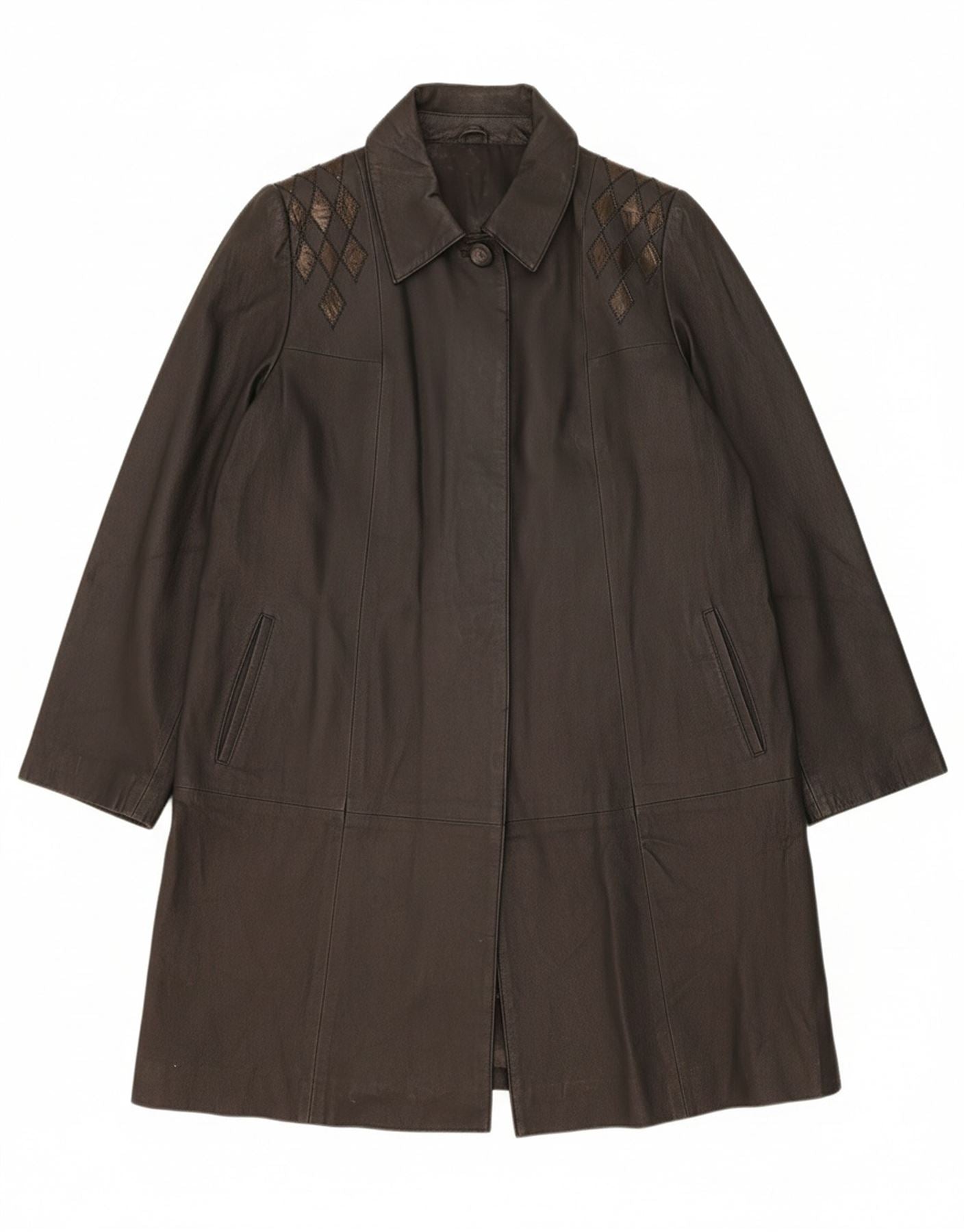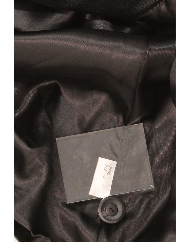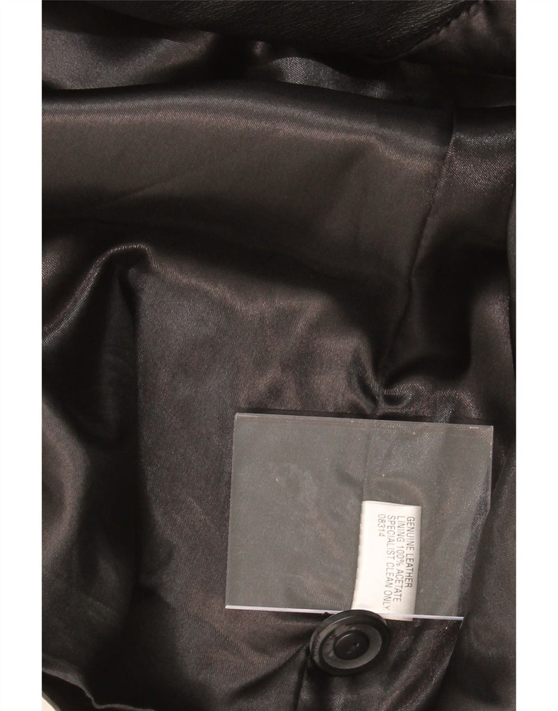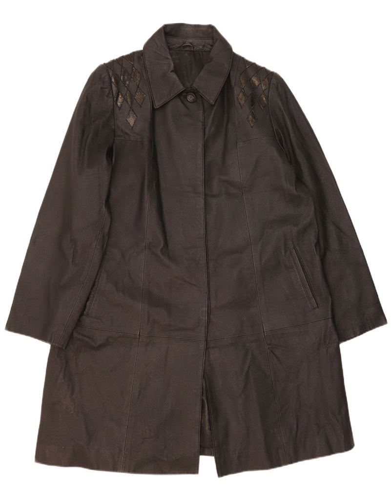 VINTAGE Womens Leather Coat UK 14 Large Black Argyle/Diamond Leather