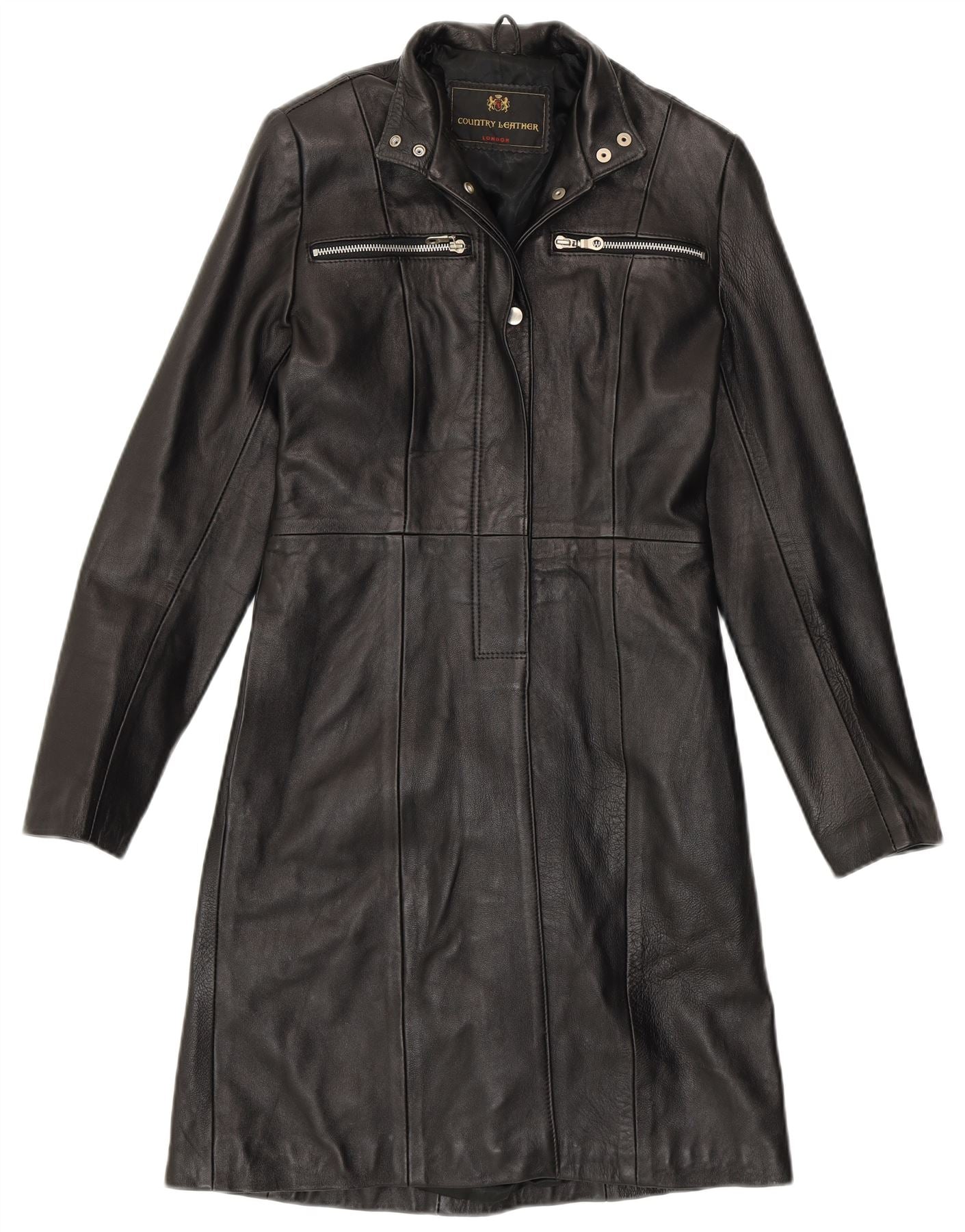 VINTAGE Womens Leather Coat UK 8 Small Black Leather