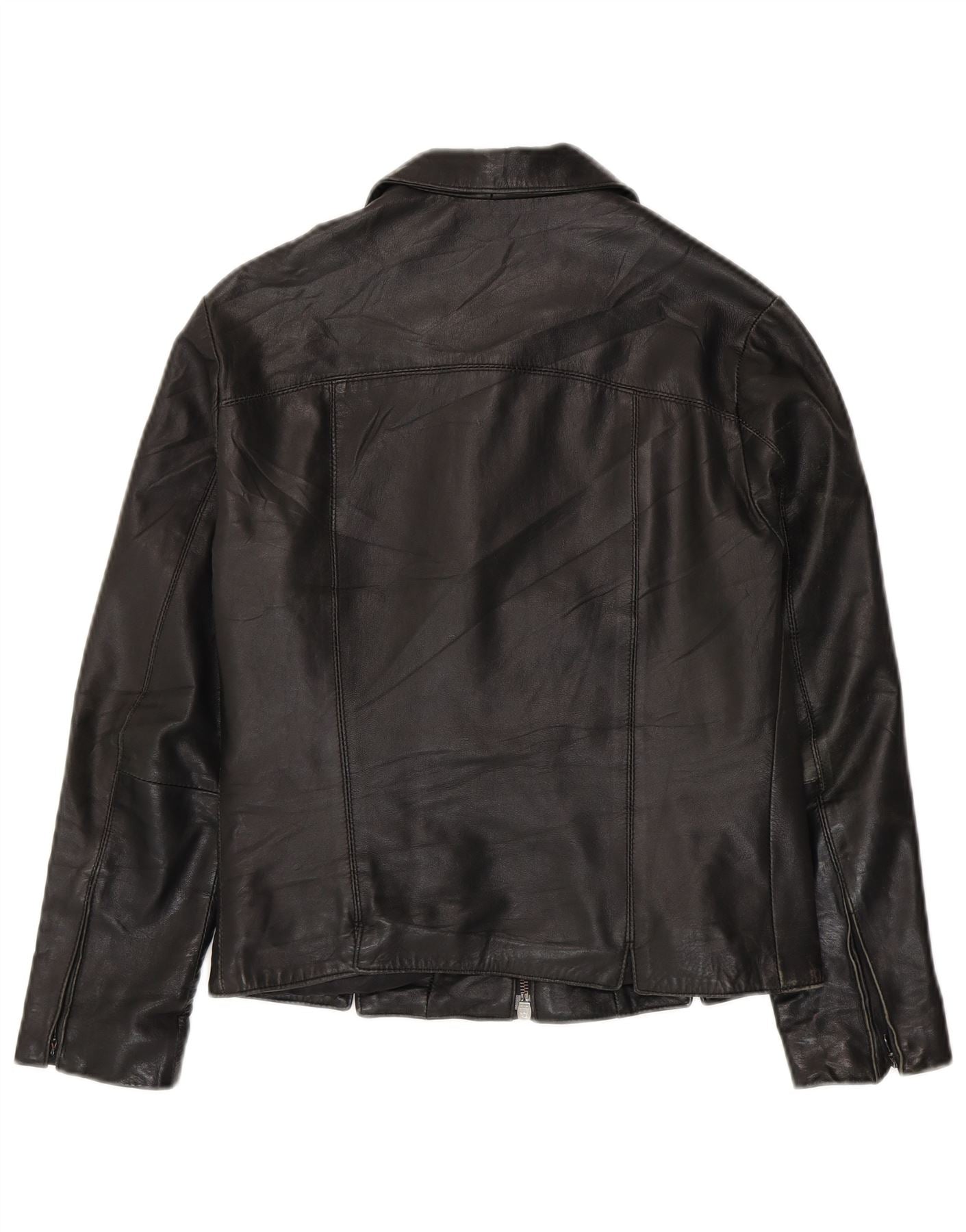 VINTAGE Womens Leather Jacket IT 42 Medium Black Leather
