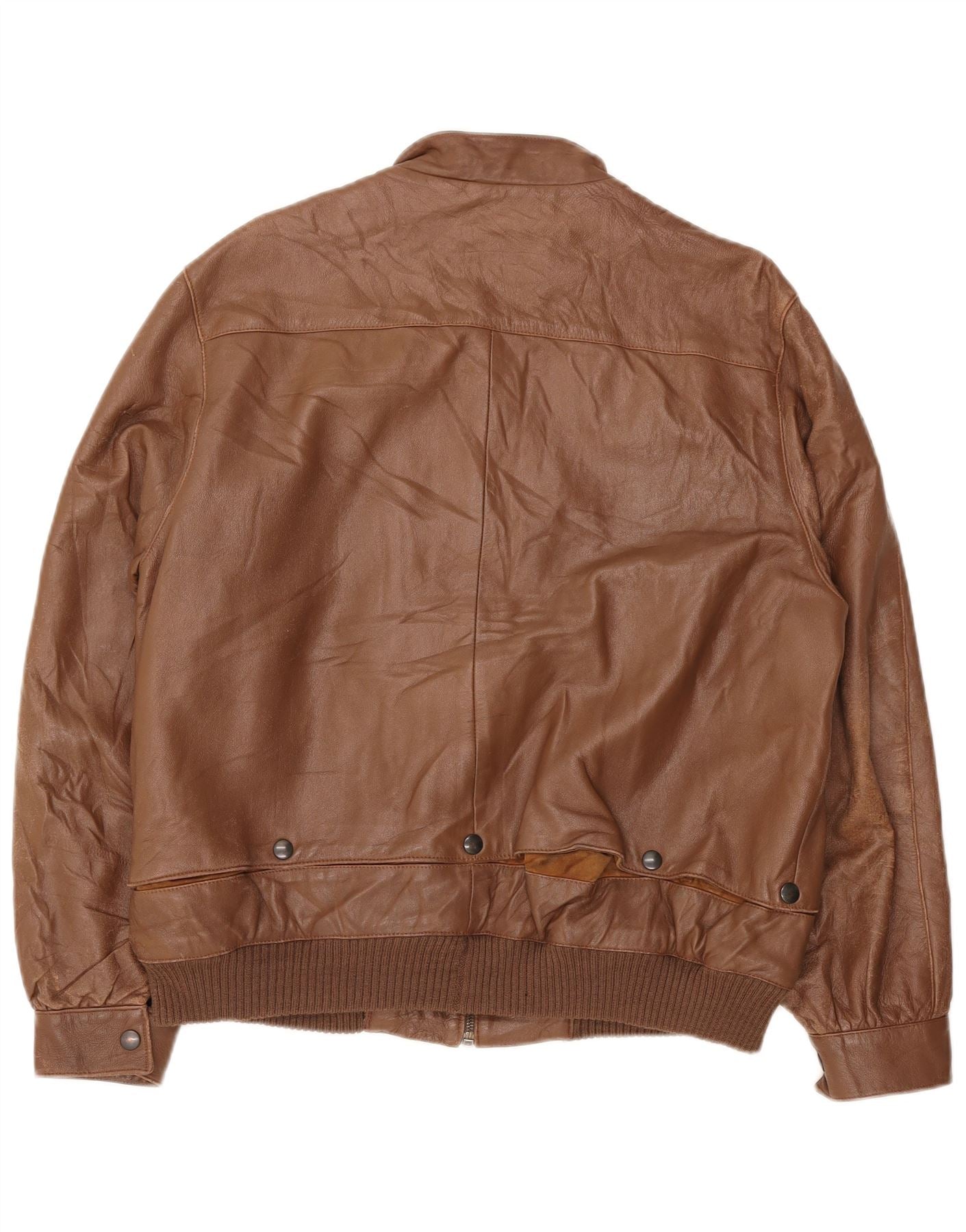 VINTAGE Womens Leather Jacket IT 48 XL Brown Leather