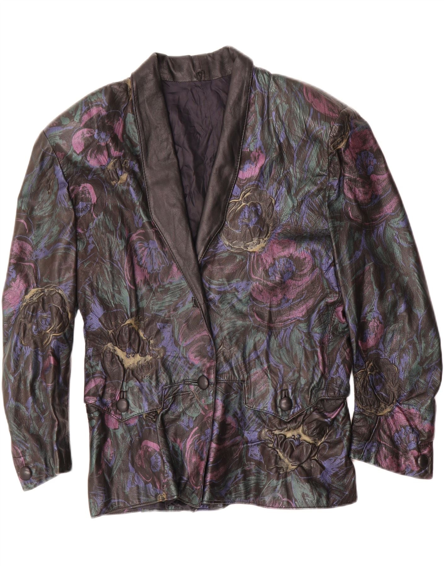 VINTAGE Womens Leather Jacket UK 16 Large Black Floral Leather