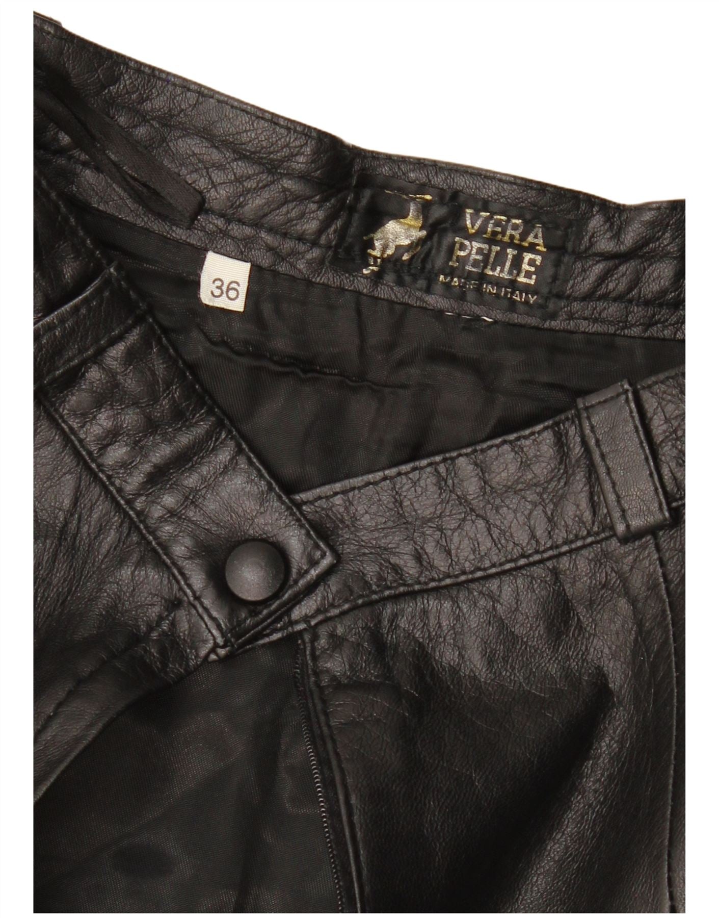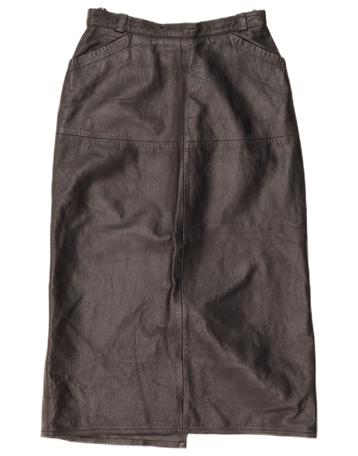 VINTAGE Womens Leather Skirt EU 36 Small W26 Black Leather