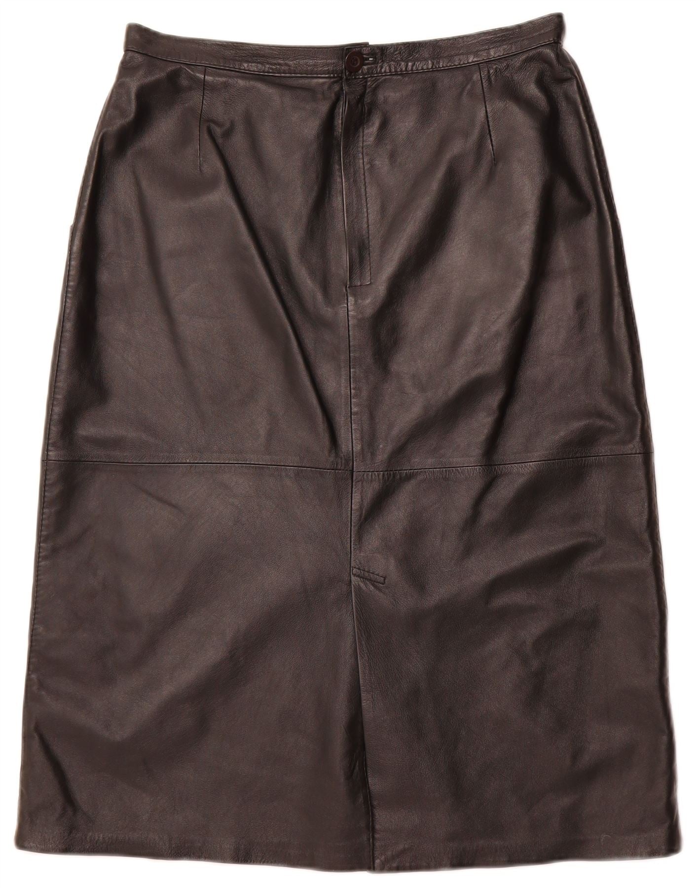 VINTAGE Womens Leather Skirt IT 44 Medium W32 Black