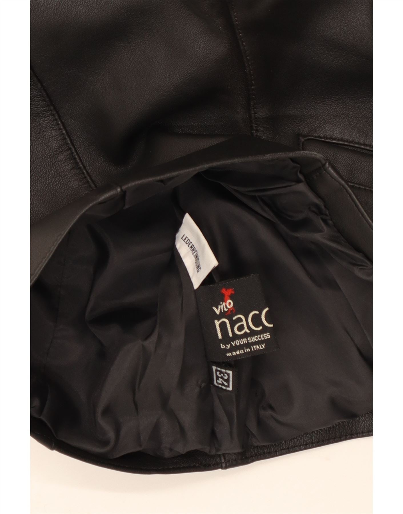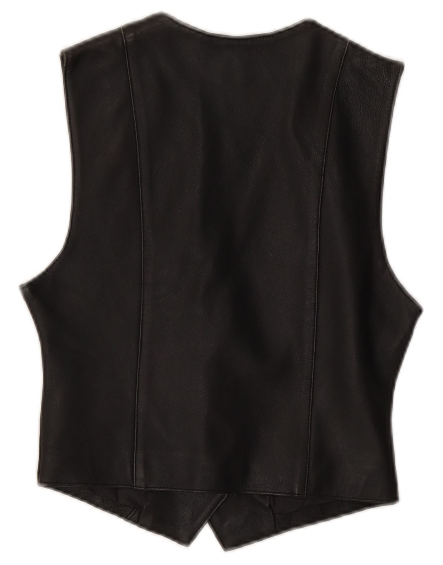 VINTAGE Womens Leather Waistcoat EU 34 XS Black Leather