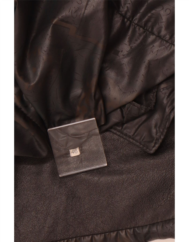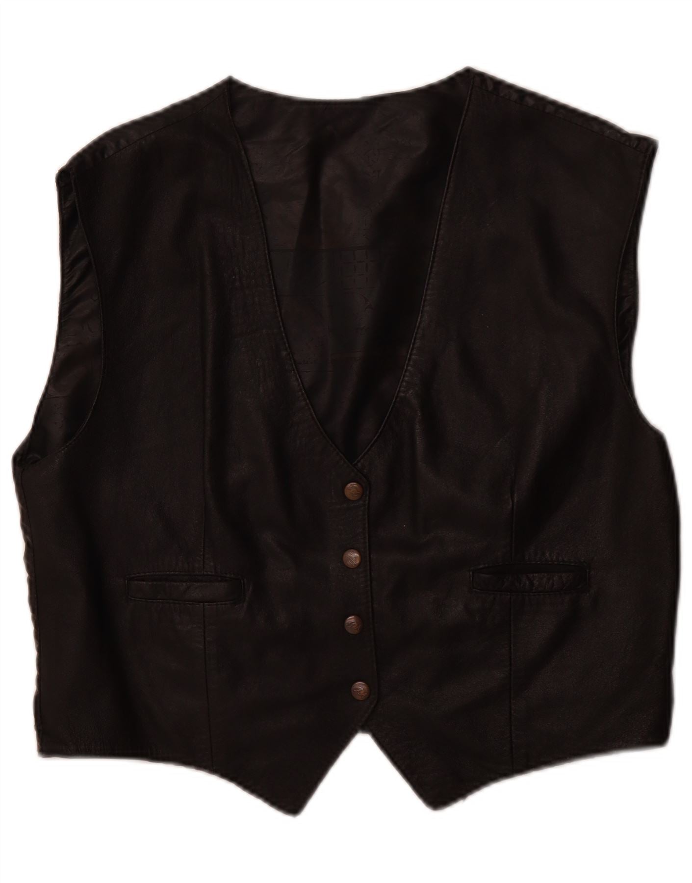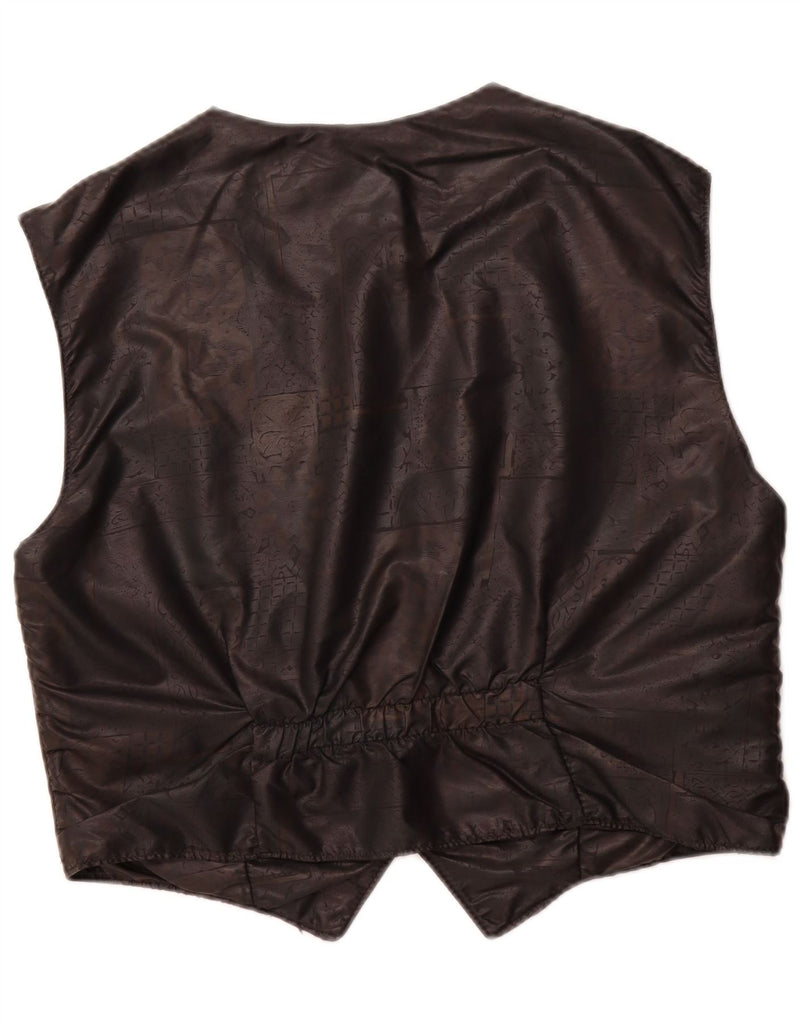 VINTAGE Womens Leather Waistcoat IT 46 Large Black Paisley Leather