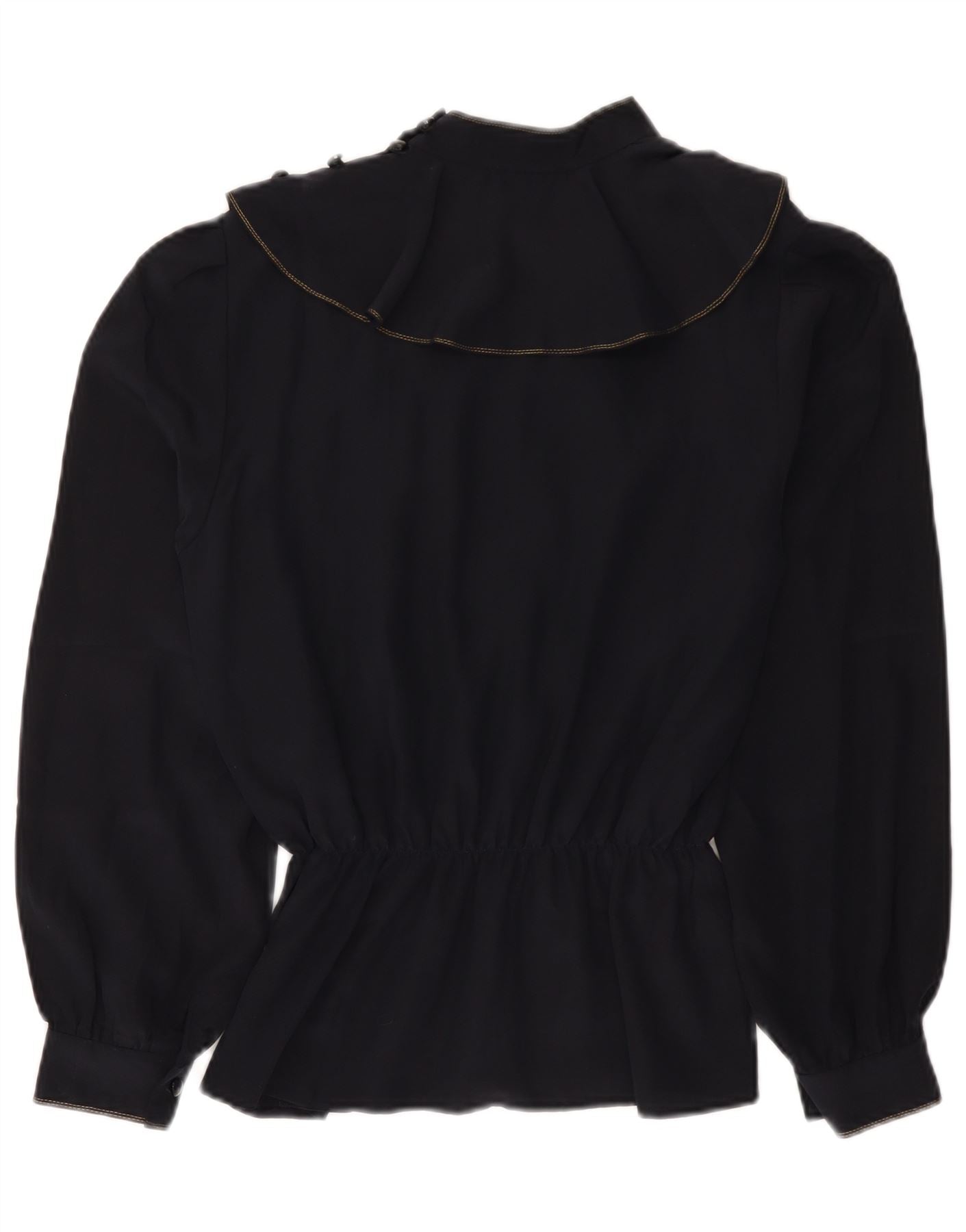 Vintage Womens Long Sleeve Blouse Top UK 14 Medium Navy Blue Floral