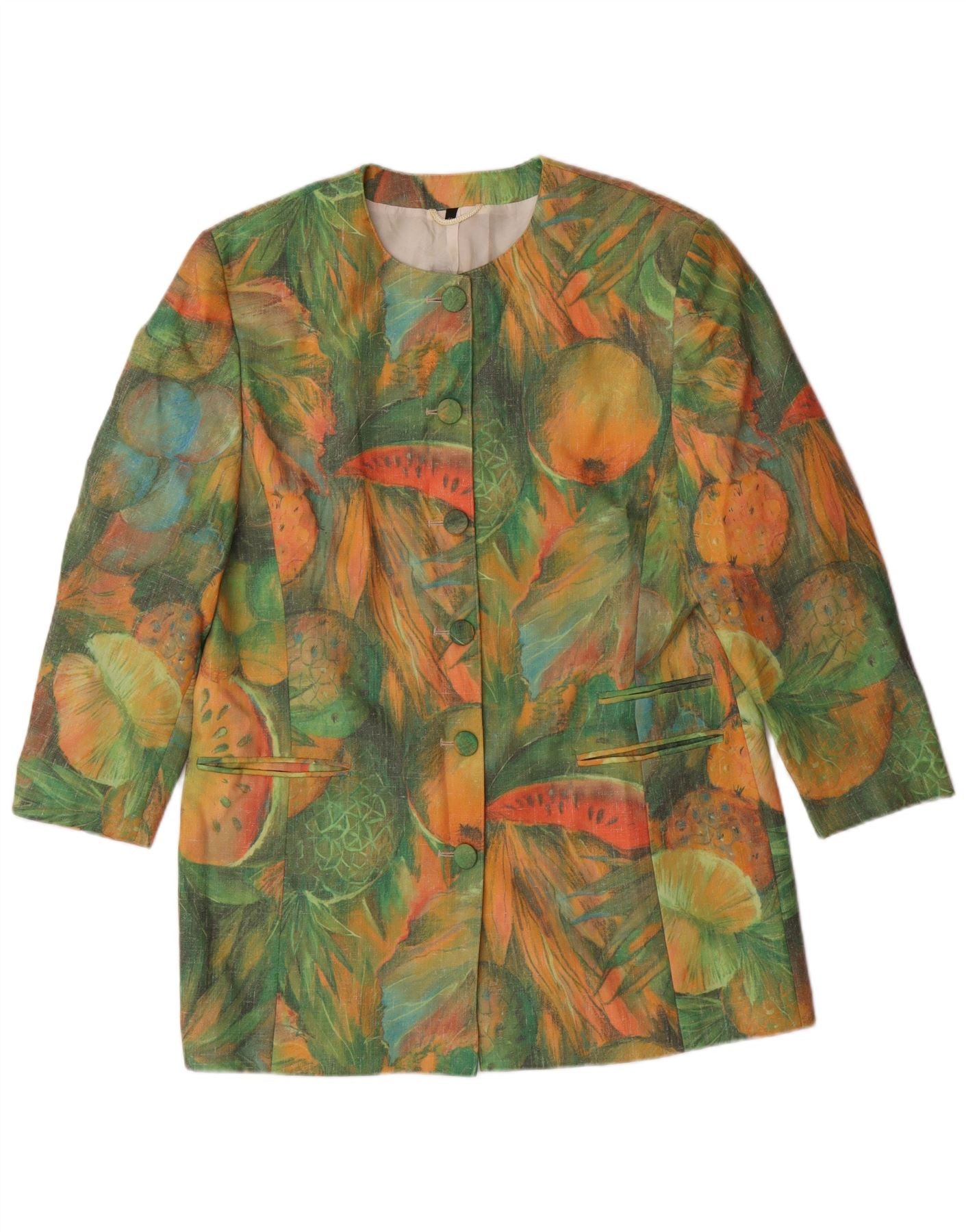VINTAGE Womens Longline Abstract Pattern Blazer Jacket EU 42 Large Green