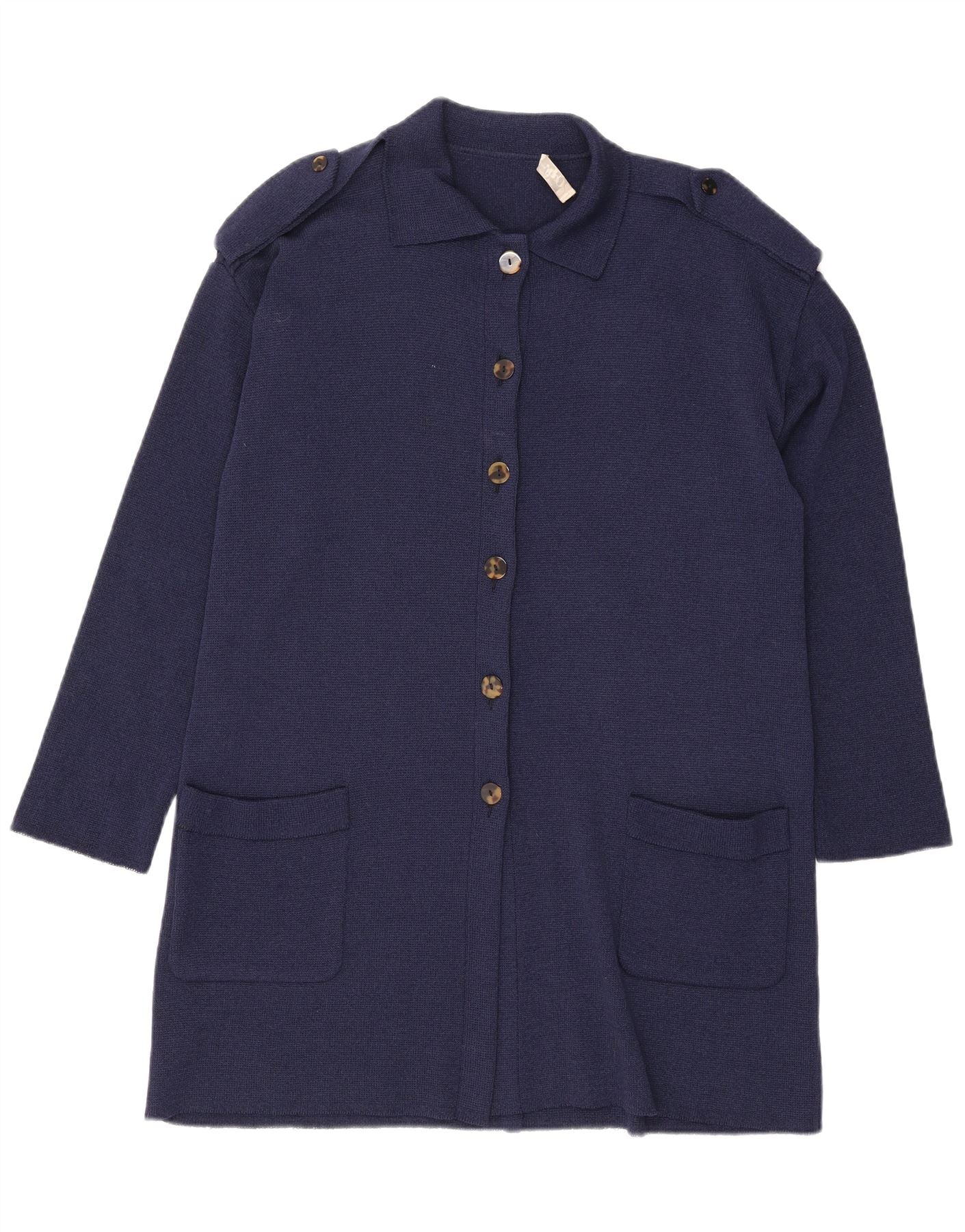 VINTAGE Womens Longline Cardigan Sweater IT 44 Medium Navy Blue Wool