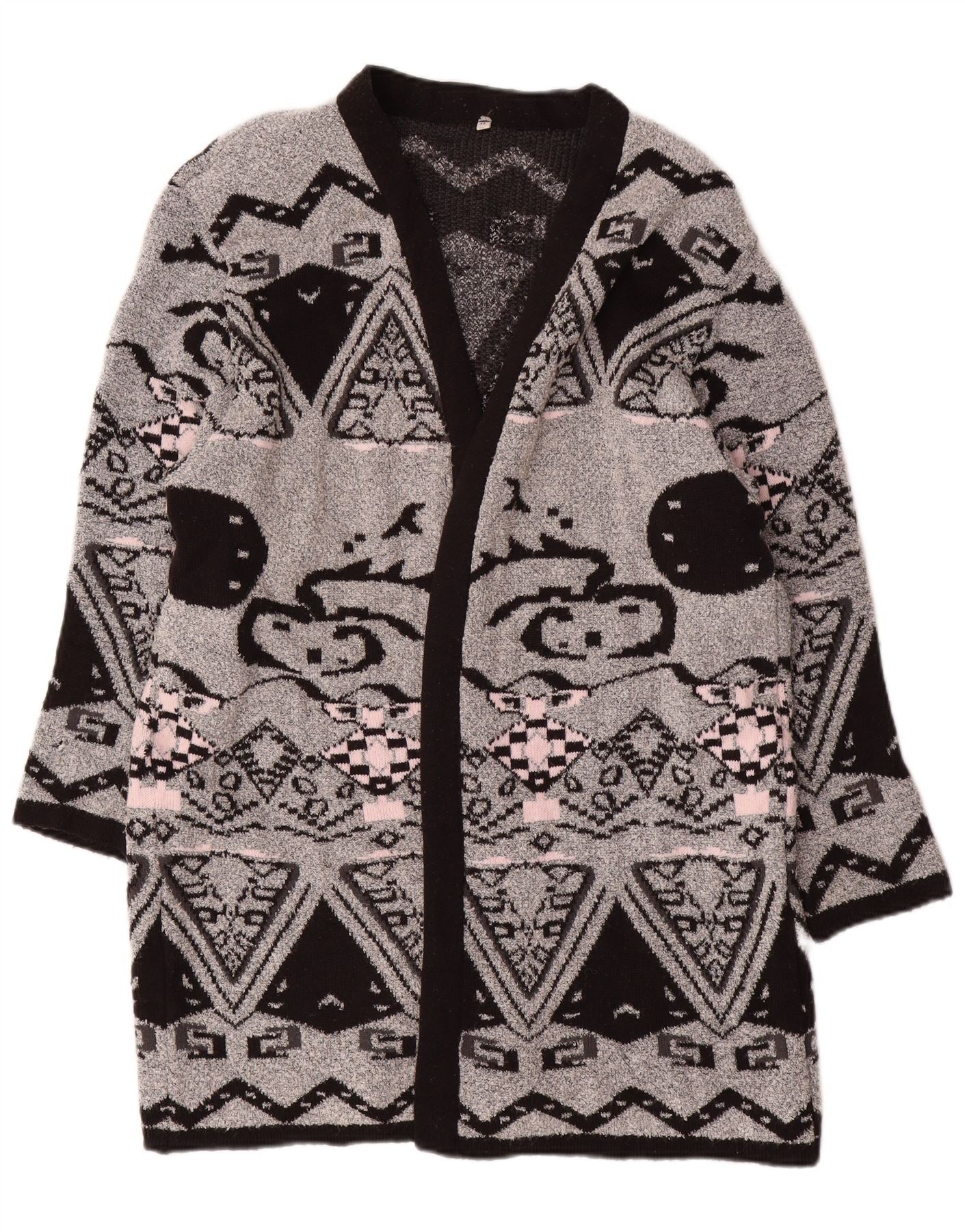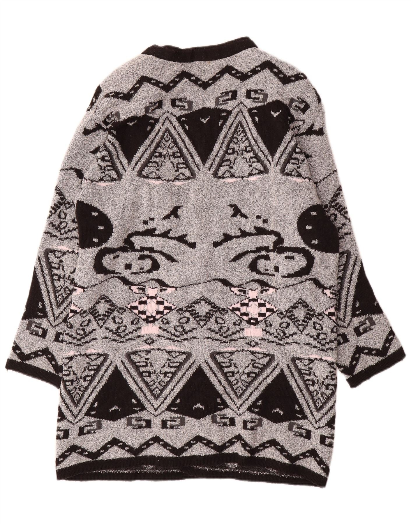 VINTAGE Womens Longline Open Cardigan Sweater EU 44 XL Grey Geometric