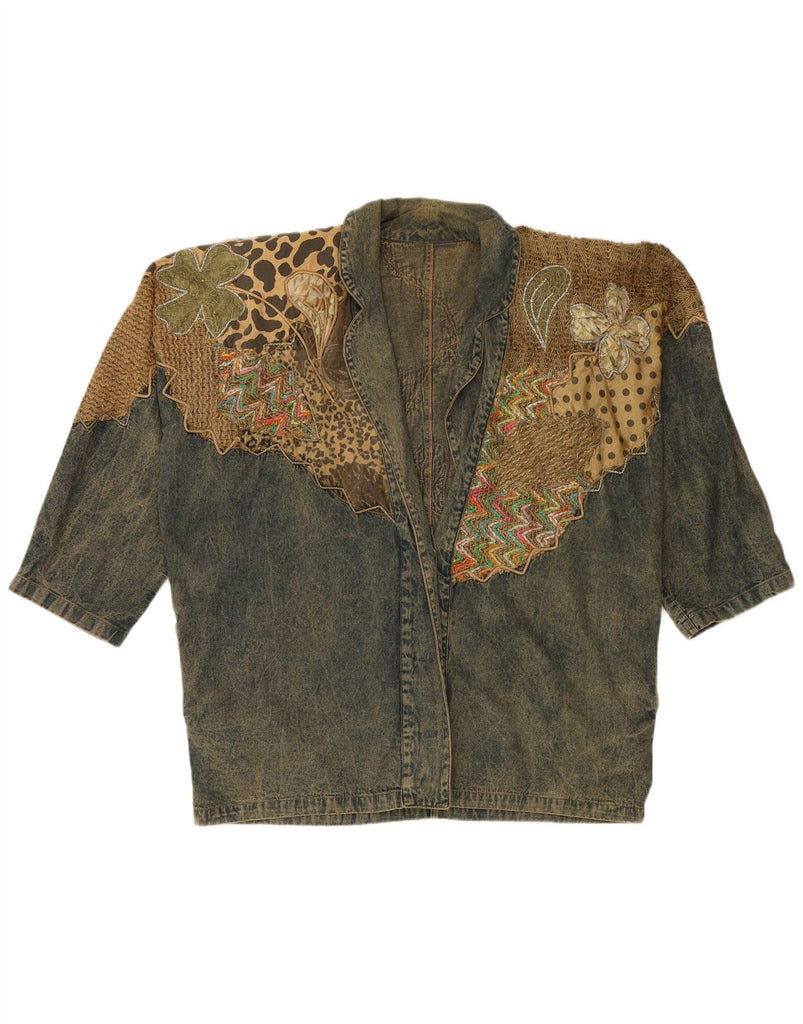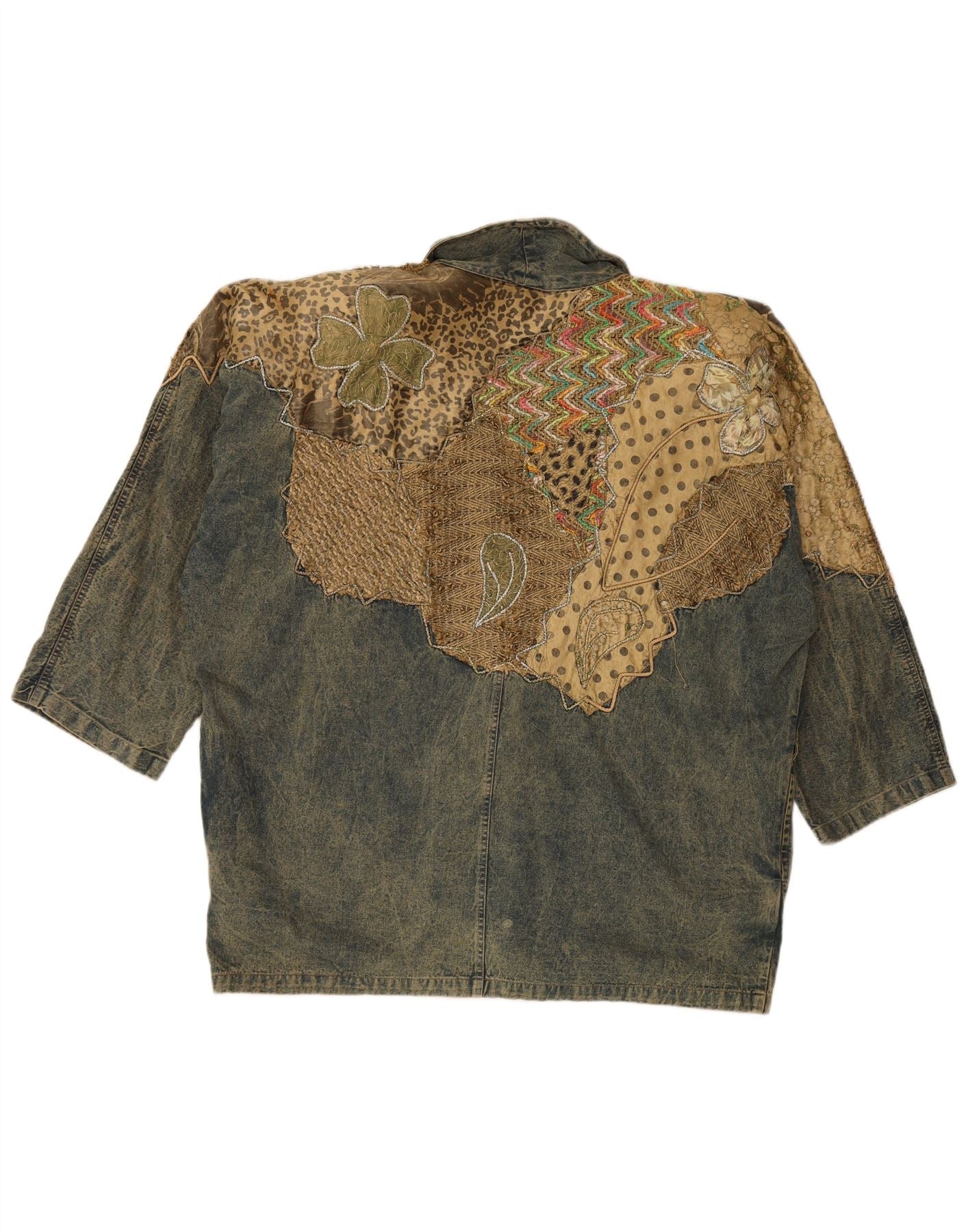 VINTAGE Womens Loose Fit Denim Blazer Jacket UK 20 2XL Blue Patchwork